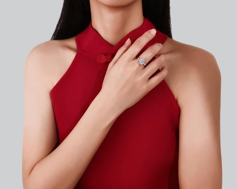 The icy blue floating ring is mesmerizing. The floating design adds an element of intrigue, making it appear as if the stone is suspended in mid-air. Crafted with meticulous attention to detail, this ring is both elegant and unique.