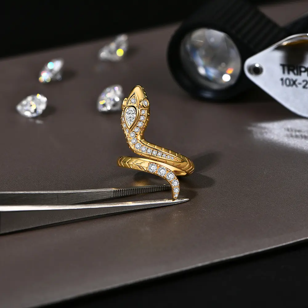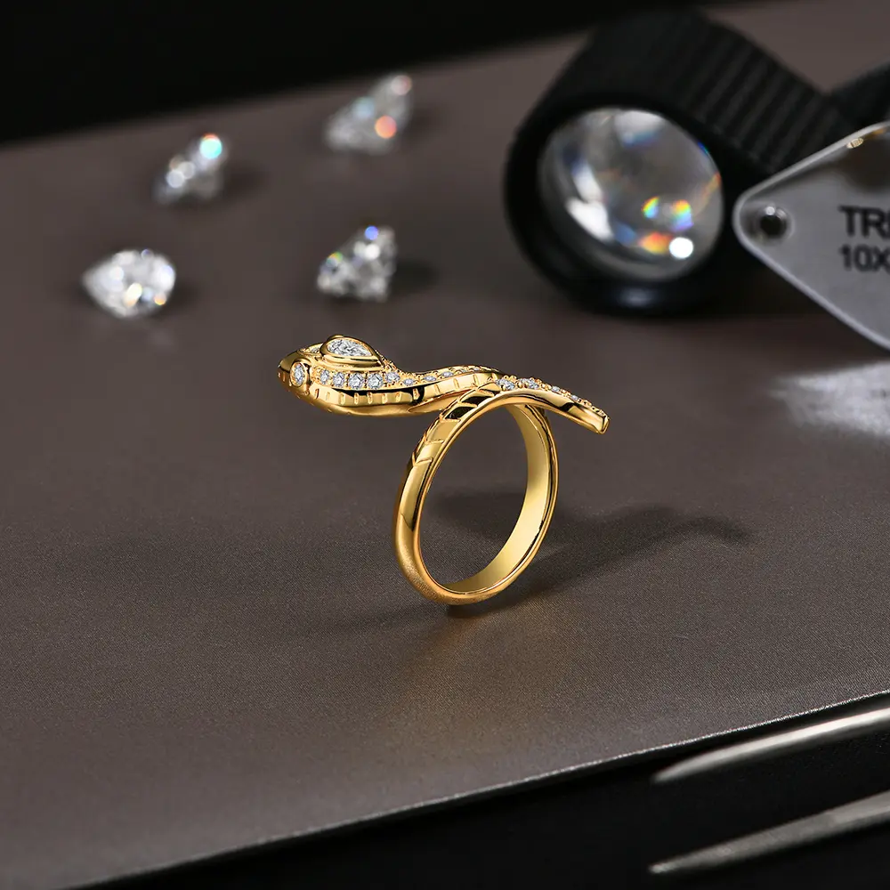 All Synthetic Moissanite Snake Ring Vintage Personality Gift Anniversary For Woman Man Wearring R102