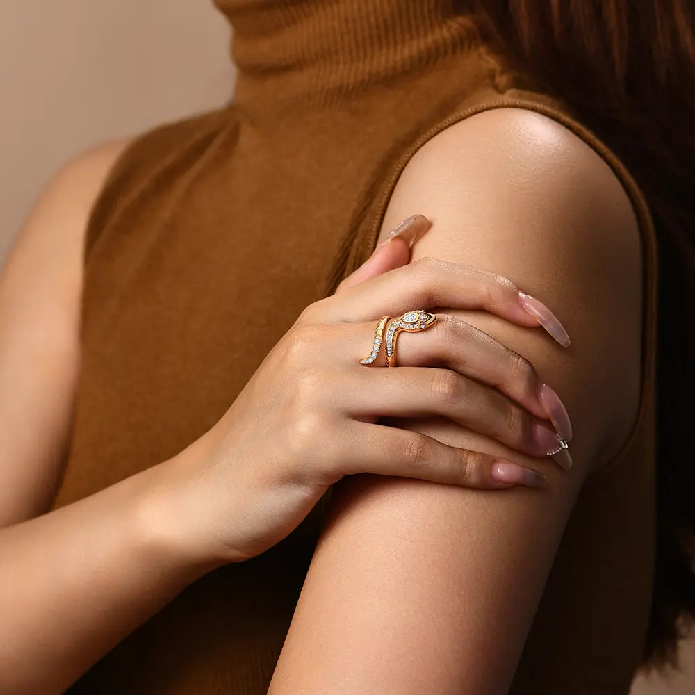 Discover the elegance of the All Synthetic Moissanite Snake Ring, a timeless piece that embodies a vintage charm. This ring is perfect for both women and men, making it a versatile choice for any occasion.