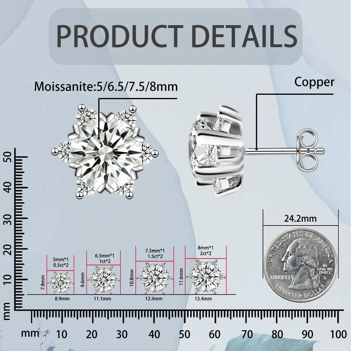 ·Inspired by the purity of winter, each stud earring captures the enchanting beauty of a snowflake frozen in time. The brilliant moissanite at the center radiates a dazzling sparkle. Surrounding facets mirror the geometry of real snowflakes — elegant, balanced, and endlessly captivating.