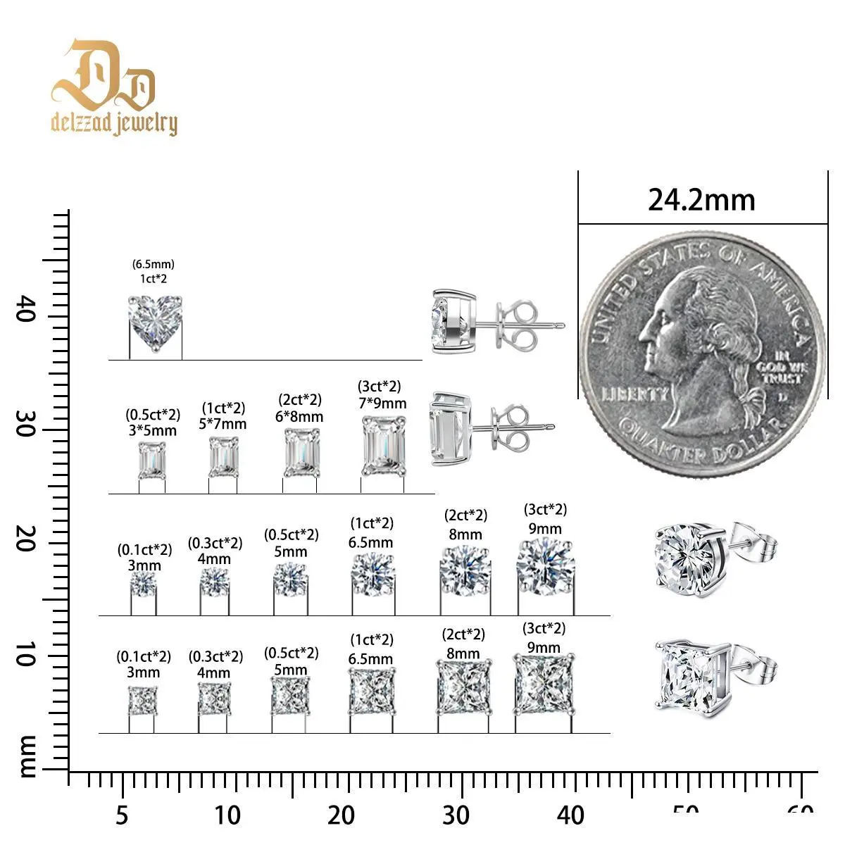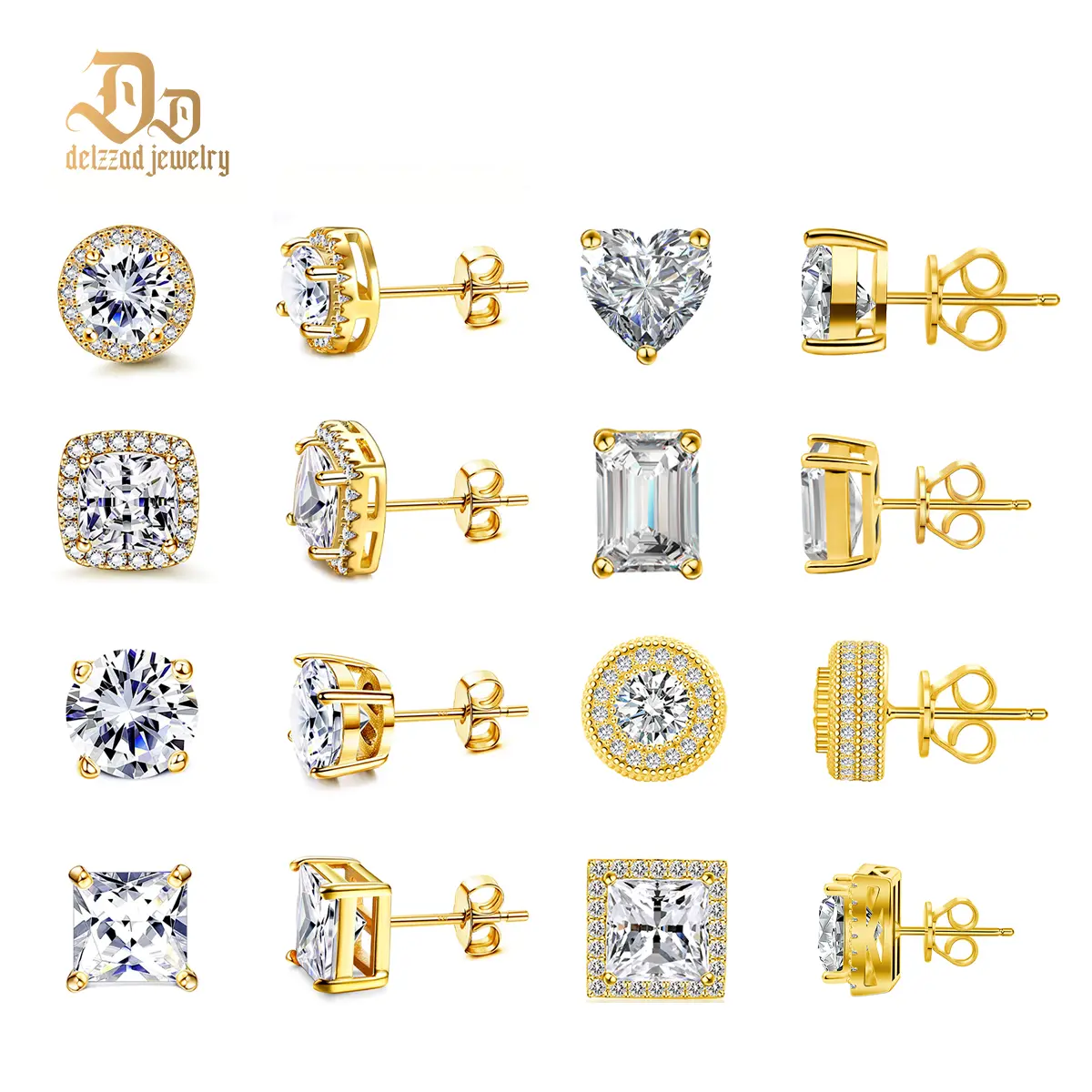 Delzzad 8 Styles Stud Earrings Synthetic Moissanite Stud Earring S925 Studs Perfect Birthday Anniversary Mother's Day Christmas Gifts for Men Women