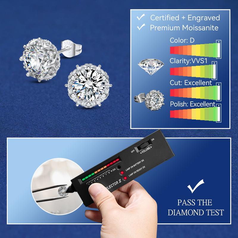 ·Three sizes to choose from: 4mm(0.3ct*2)/5mm(0.5ct*2)/6.5mm(1.0ct*2)