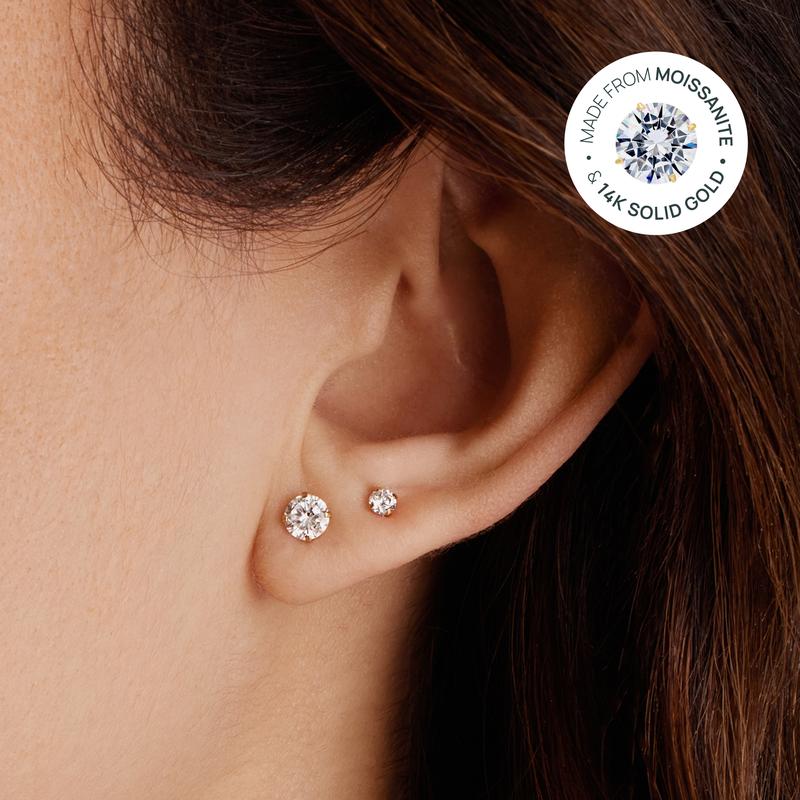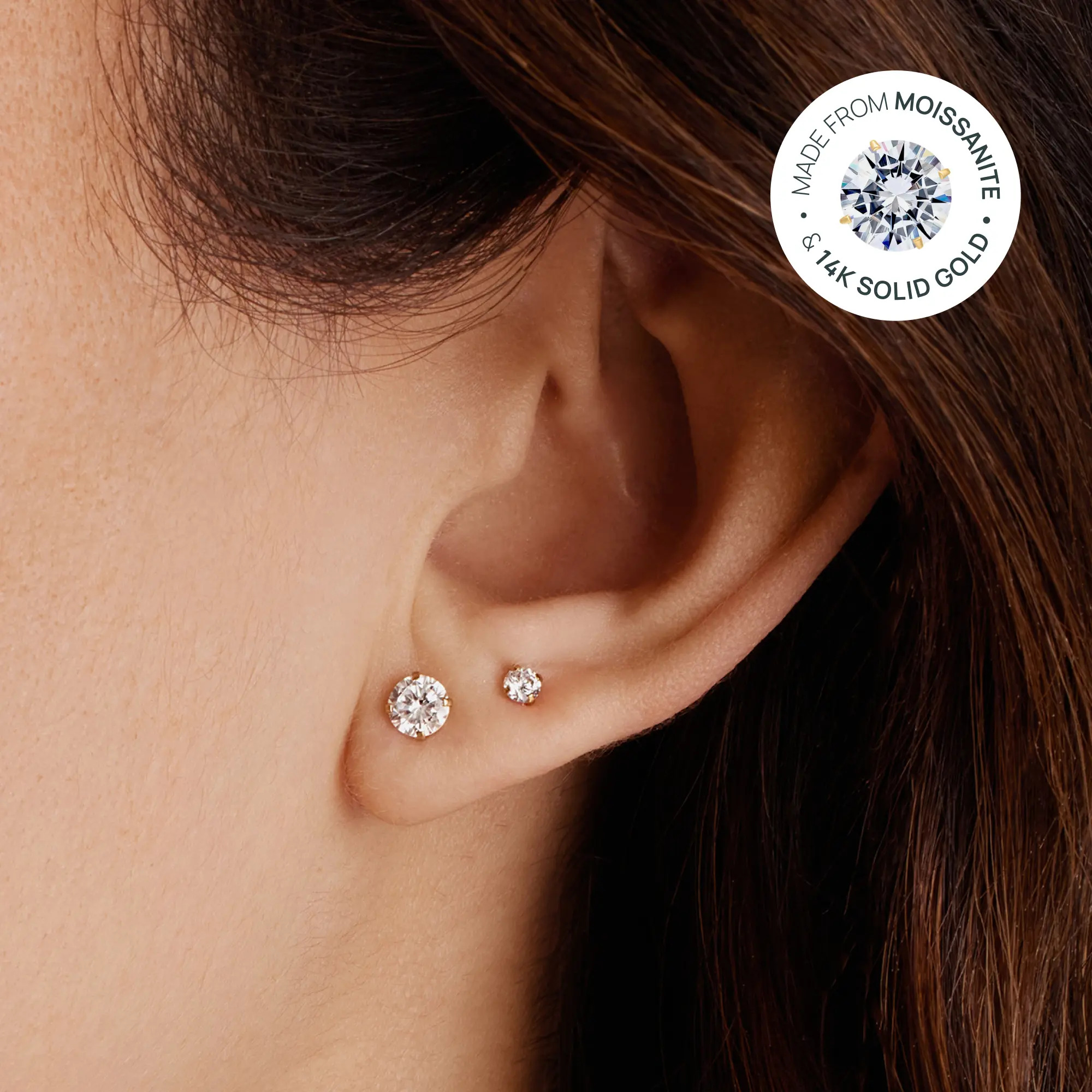 Discover the brilliance of our moissanite stud earrings, crafted with lab-created moissanite set in solid 14K gold. These earrings rival the brilliance of diamonds, offering an ethical and radiant alternative at a lower cost. Choose your perfect sparkle with these timeless studs.