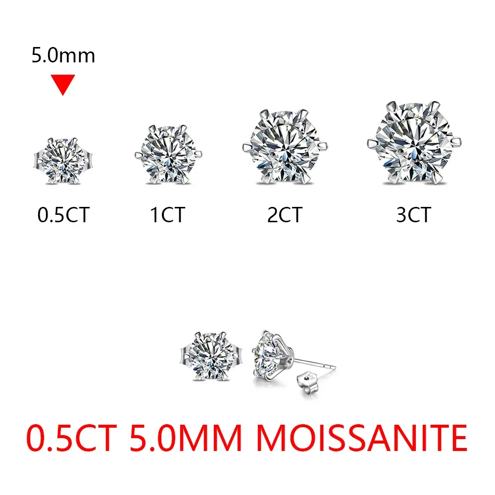 5. 6 prong Synthetic Moissanite Stud Earrings 0.5Ct~3Ct D Color VVS1 for Women Solitaire Fine Jewelry E009 sixclaw moissanite SpringStatements