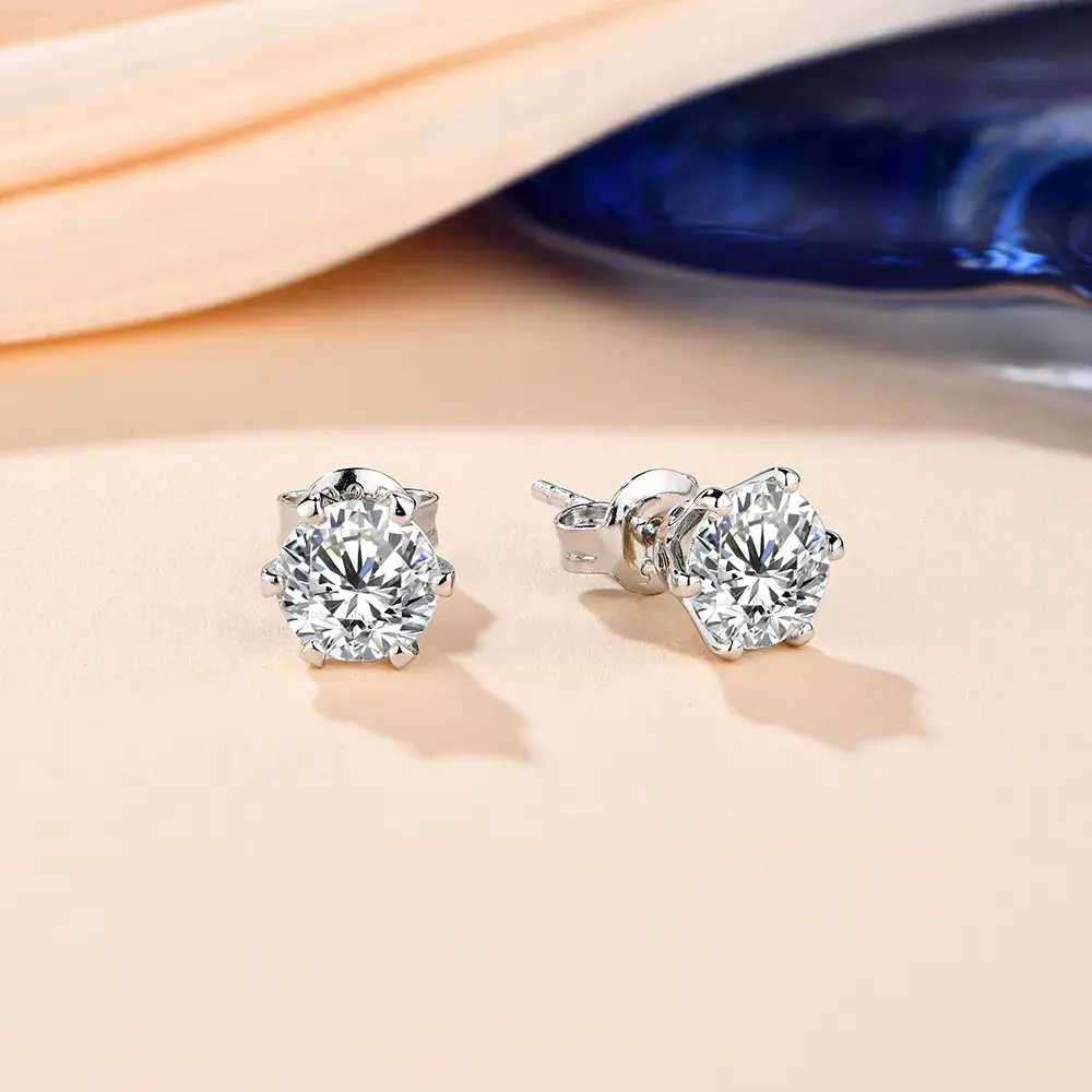 6 prong Synthetic Moissanite Stud Earrings 0.5Ct~3Ct D Color  VVS1 for Women Solitaire Fine Jewelry E009 sixclaw moissanite SpringStatements