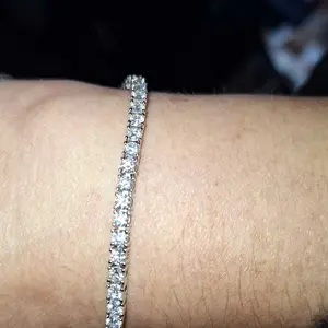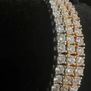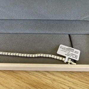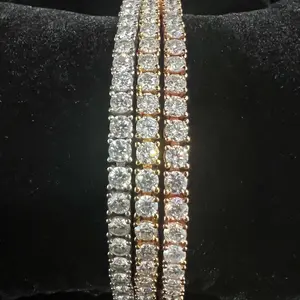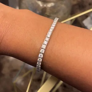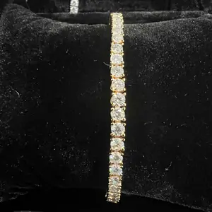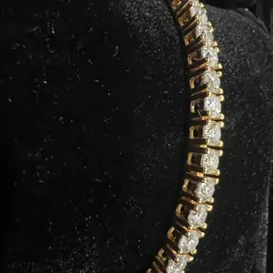 ·Tennis bracelet in Gold Vermeil, crafted from 925 sterling silver and synthetic moissanite whole bracelet, 0.3mm each and 5.2ct total, featuring a VVS1-2 clarity, 1.20 ratio, and D/E color grade center stone.Experience the brilliance of an authentic Moissanite stone, with a refractive index of 2.69.