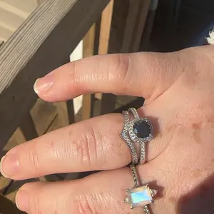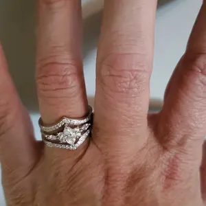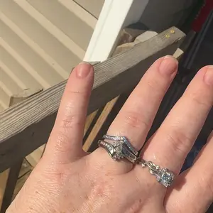 ·If you are looking for a stackable band and with a simple style, then this will be a good choice. Glossy silvery tone mix with the shining moissanite gemstones, make the stacked ring more eye catching, the quality is evident in its sparkle.