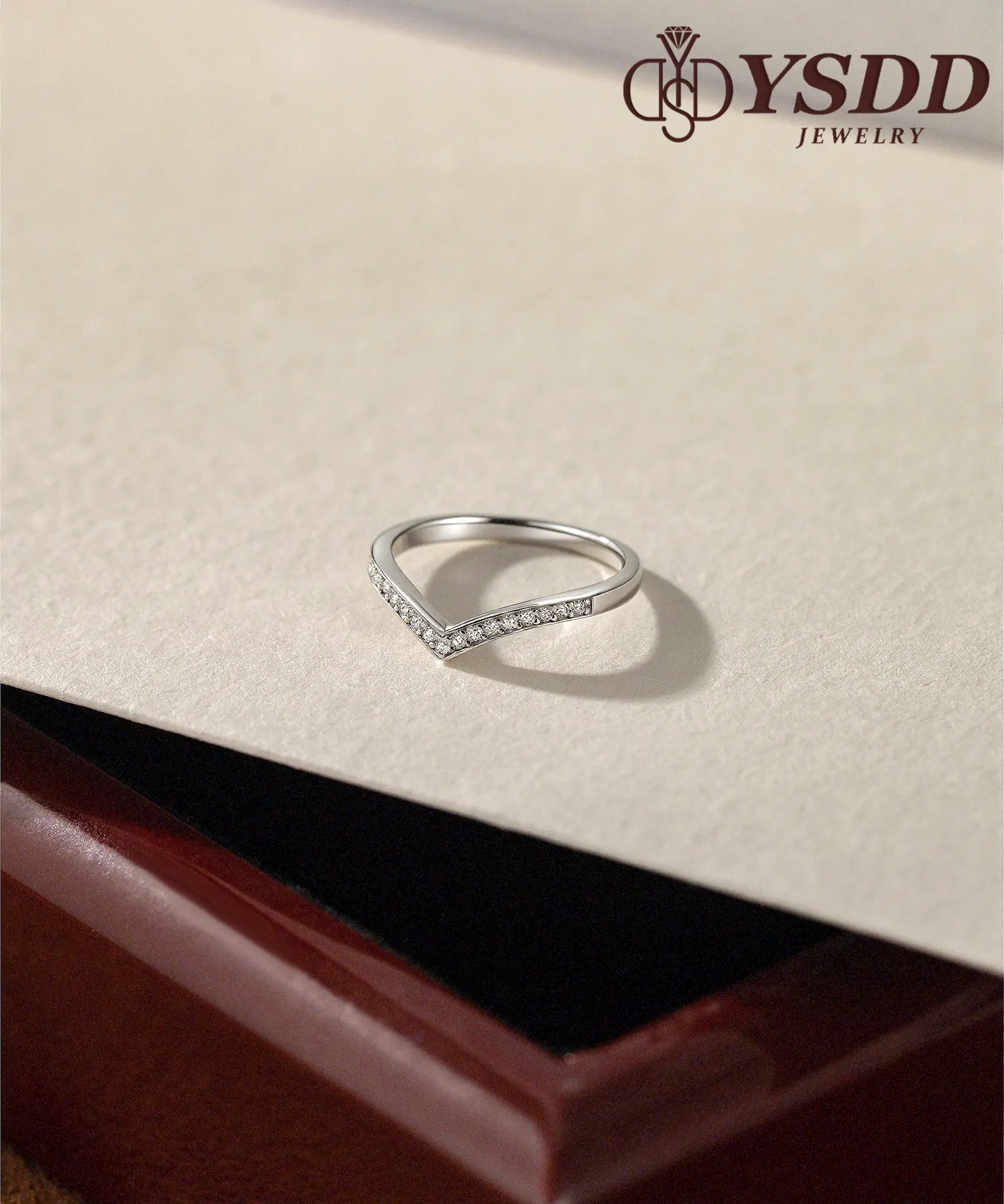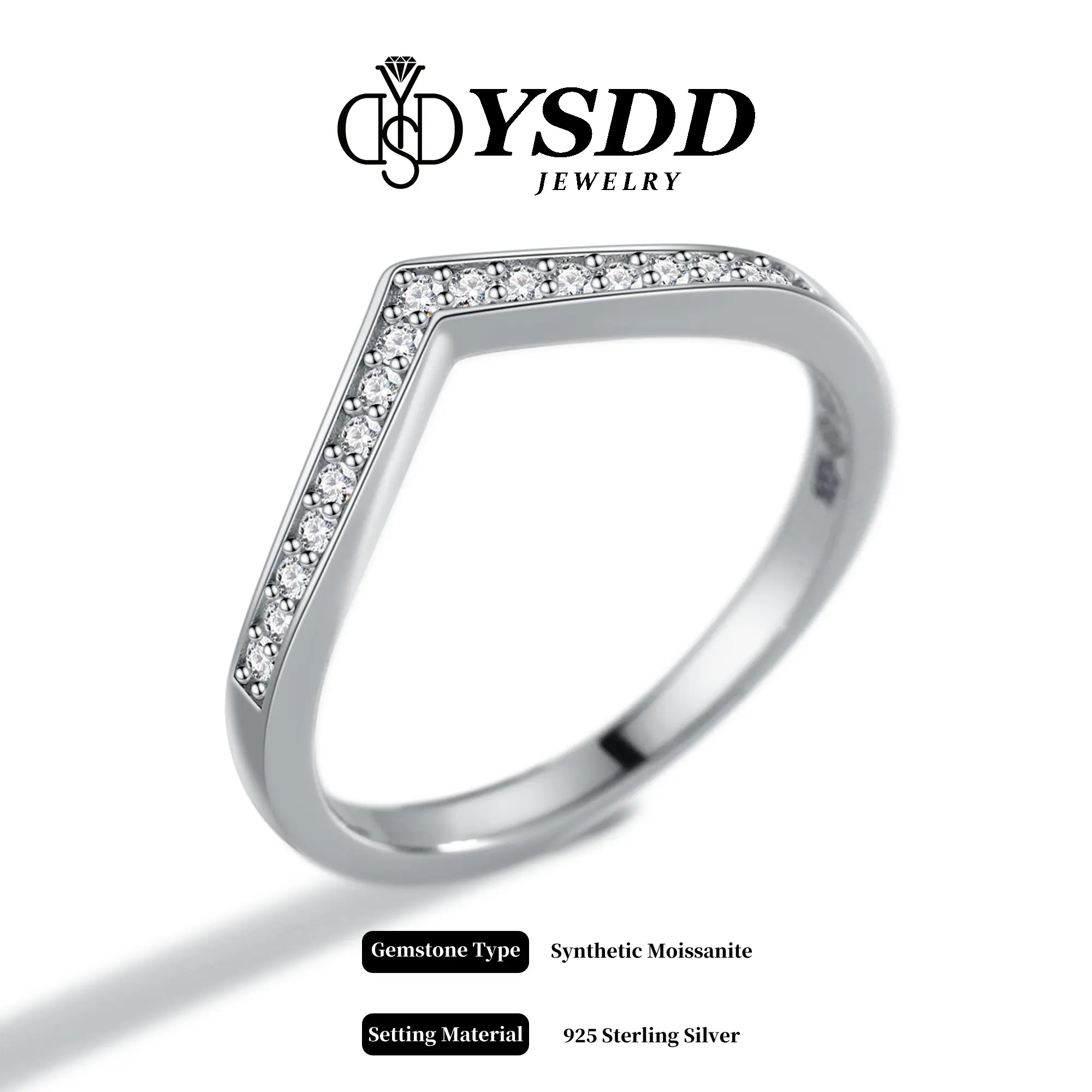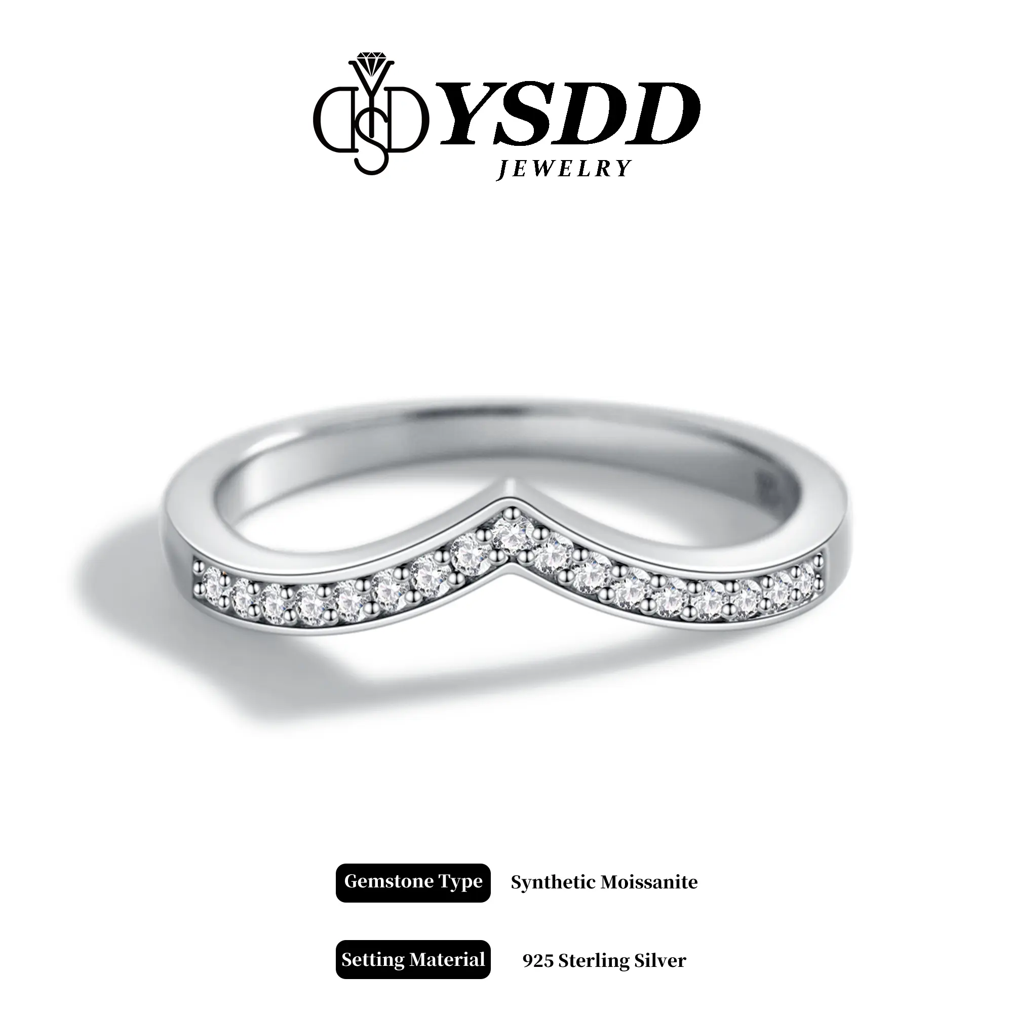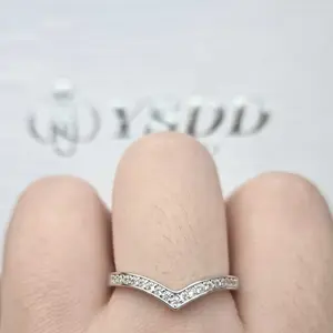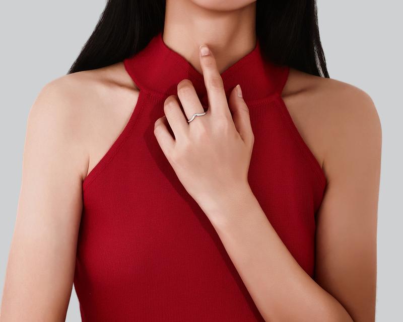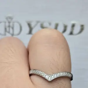 ·V shape wedding band, made from s925 sterling solid silver, it's designed to last a lifetime. With synthetic moissanite, features D color VVS1 clarity. Thin band but sturdy, US size up to size 10, comfortable for daily wear.