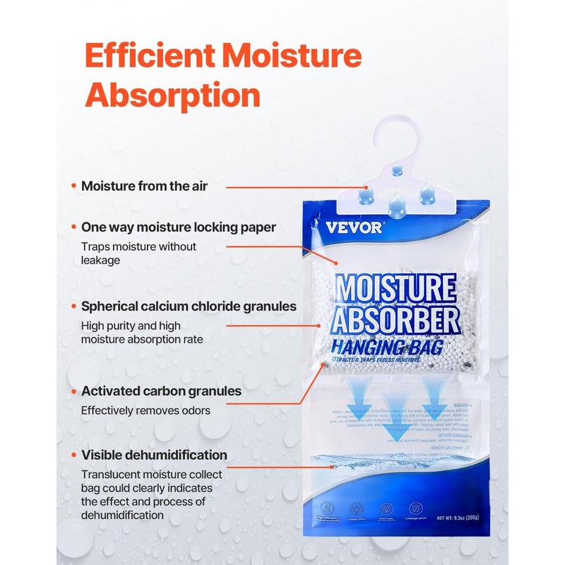 ·Efficient Moisture Absorption: These hanging moisture absorber bags with 500ml large capacity combines calcium chloride beads and moisture-locking paper, which efficiently absorb moisture and keep your space dry for a longer period.