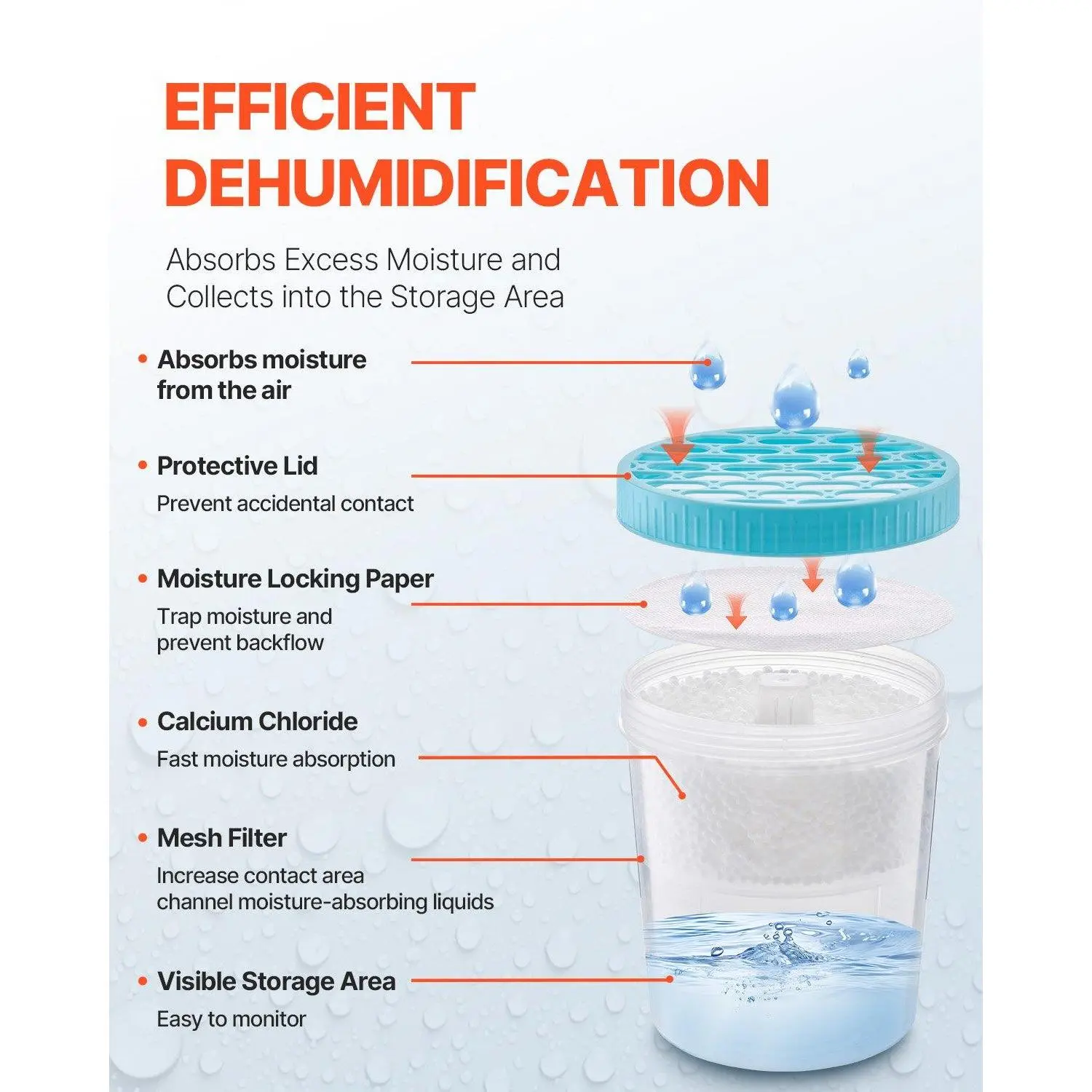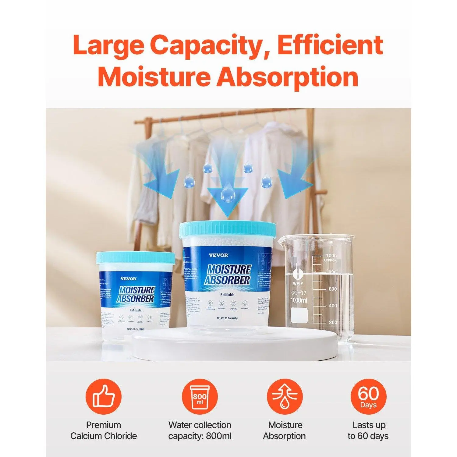 ·Efficient Moisture Absorption: The moisture absorber bucket with 800ml large capacity features spherical calcium chloride beads and moisture-locking paper, efficiently absorbing moisture and locking it in, keeping your space dry for extended periods.