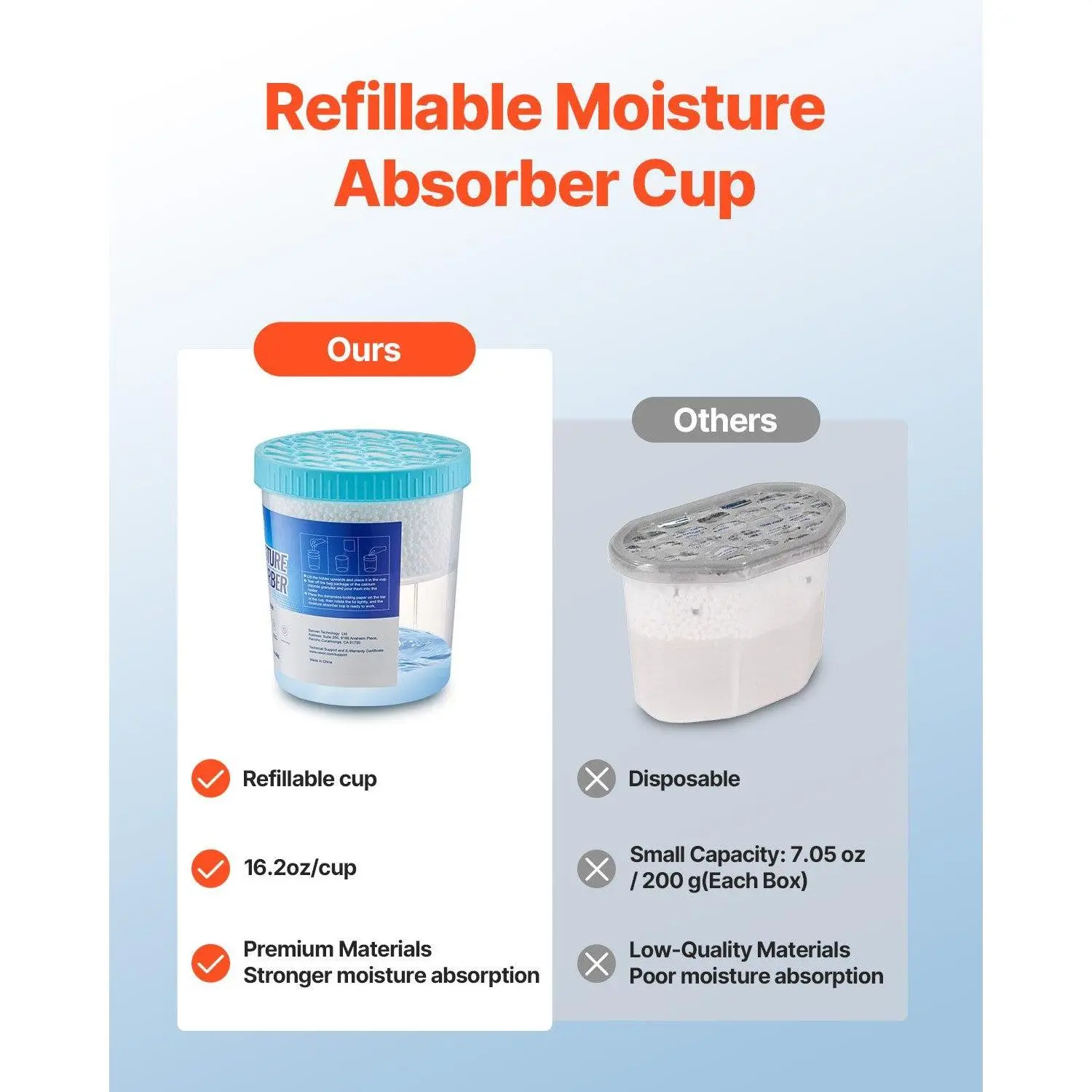 ·Visible Moisture Absorption: The dehumidifier moisture absorber collects excess moisture from the air and stores it in the transparent storage area, allowing easy monitoring of moisture absorption.