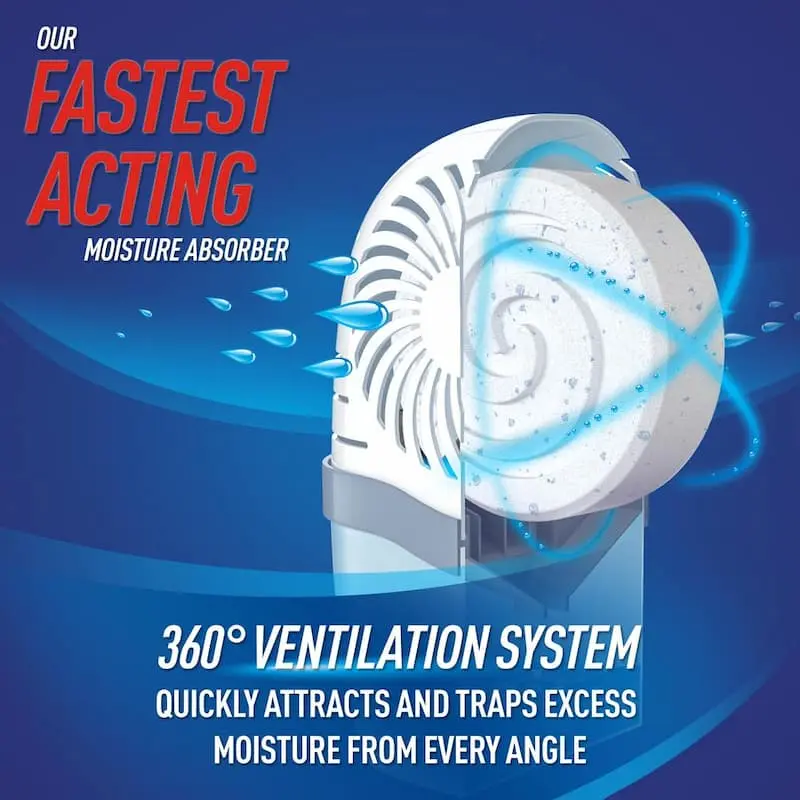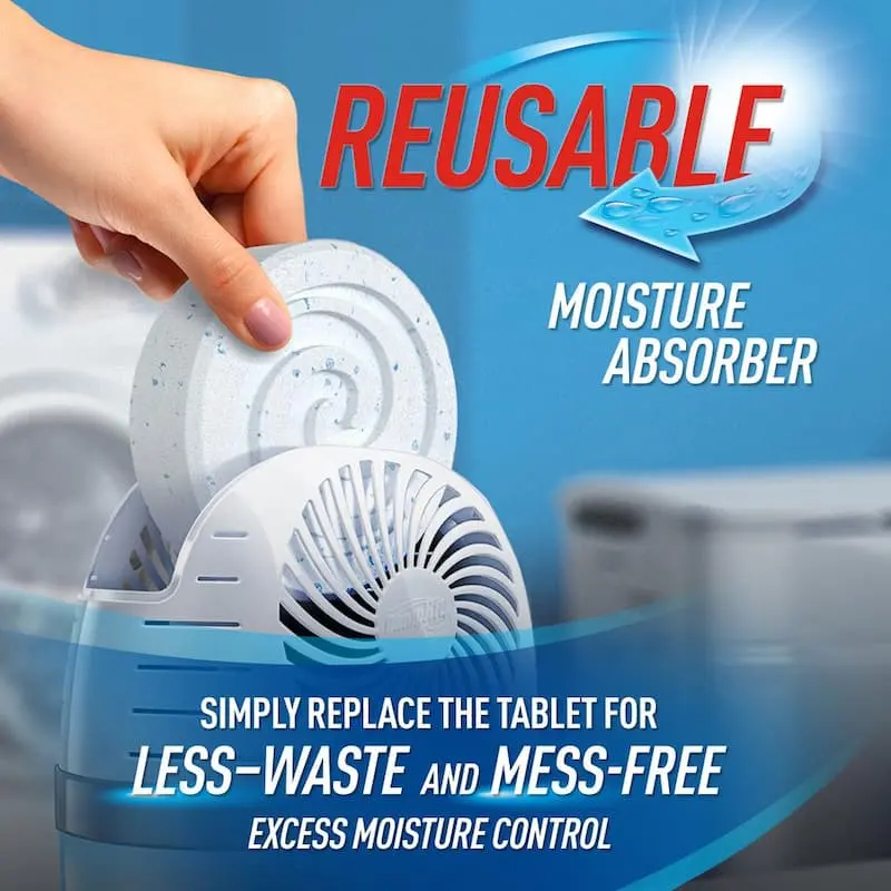 5. DampRid Drop-In Tab Moisture Absorber Starter Kit (2-Pack), Fast-Acting 360° Ventilation System, for Reusable Dehumidifier Starter Kit, Eliminates Musty Odors in Bathrooms Basements Laundry Rooms, Septic Safe, Scented or Fragrance Free Tabs.