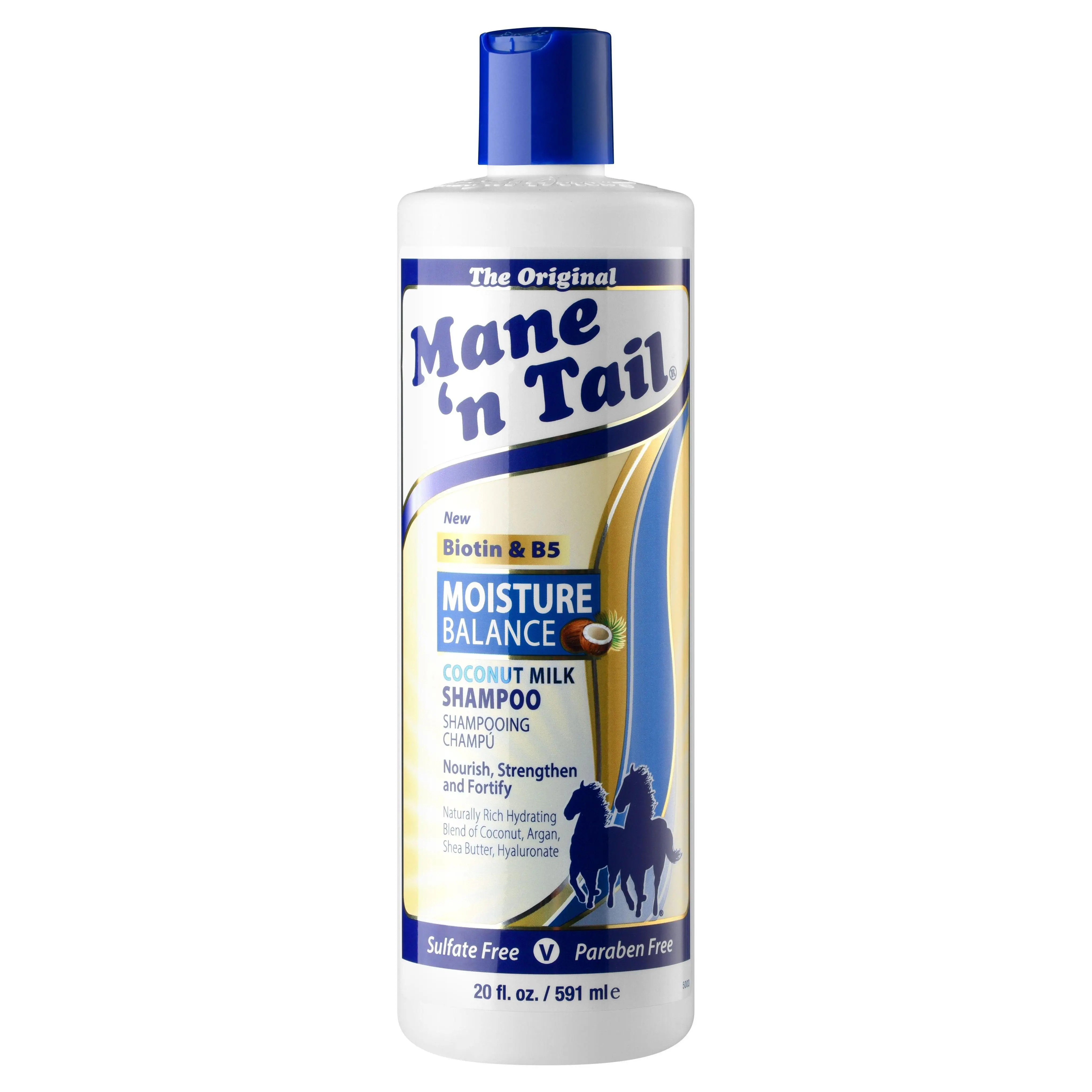 Mane 'n Tail Original Shampoo/Conditioner formulas are created for horses, but used by people. Now we have designed these new formulas specific for personal hair care needs. Moisture Balance Shampoo provides gentle cleansing and moisturizing for both the hair and scalp. It is sulfate free, paraben free and vegan. Naturally rich hydrating blend of coconut, argan, shea butter and hyaluronate. Creamy coconut nuances nourish with optimal hydration for a healthy scalp, helping promote healthier hair growth and beautiful shiny hair.