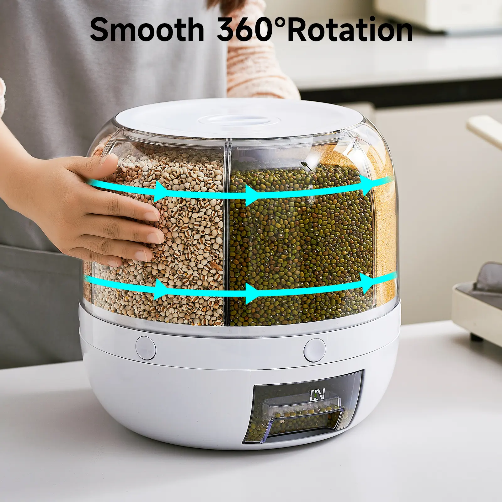 【MULTI-COMPARTMENT DESIGN】Separate compartments for organized storage of different grains, rice, or dry goods, with a clear view dome lid for easy content identification.