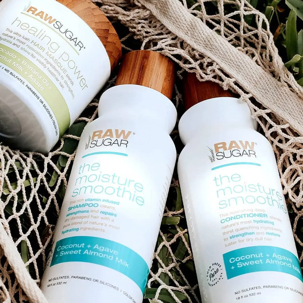 | Ingredients | Sodium C14-16 Olefin Sulfonate,Cocamidopropyl Betaine,Dimethyl Lauramide/Myristamide,*Butyrospermum Parkii (Shea) Butter Extract,*Cocos Nucifera (Coconut) Oil,*Agave Americana Leaf Extract,*Simmondsia Chinensis (Jojoba) Seed Oil,*Prunus Amygdalus Dulcis (Sweet Almond) Oil,*Aloe Barbadensis (Aloe Vera) Leaf Juice,*Macadamia Ternifolia Seed Oil,Polyquaternium-7,Guar Hydroxypropyltrimonium Chloride,Polysorbate 20,Citric Acid,Sodium Chloride,Phenoxyethanol,Sodium Benzoate,Potassium Sorbate,Fragrance (Parfum) *Certified Organic/Cold Pressed Extracts - The Moisture Smoothie Conditioner: Water (Aqua),Cetearyl Alcohol,Cetyl Alcohol,Behentrimonium Chloride,Cocos Nucifera (Coconut) Oil,Cetrimonium Chloride,Panthenol,Tocopheryl Acetate,Fragrance (Parfum) *Certified Organic/Cold Pressed Extracts - Healing Power Hair Masque: Purified Water (Aqua),Stearyl Alcohol,Steartrimonium Chloride,*Olea Europaea (Olive) Fruit Oil,Helianthus Annuus (Sunflower) Seed Oil,*Musa Sapientum () Flower Extract,*Persea Gratissima (Avocado) Fruit Extract,Tocopheryl Acetate (Vitamin E),D-Panthenol (Pro Vitamin B5),Hydroxypropyl Methylcellulose,Glycol Stearate,Dehydroacetic Acid,Benzyl Alcohol,Fragrance (Parfum) *Certified Organic/Cold Pressed Extracts ***This ingredient list is subject to change. Please refer to product packaging for the most up-to-date ingredient list.*** |