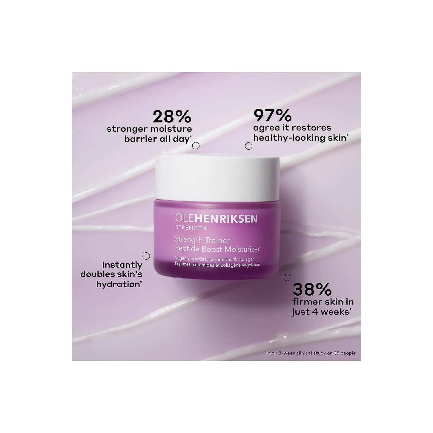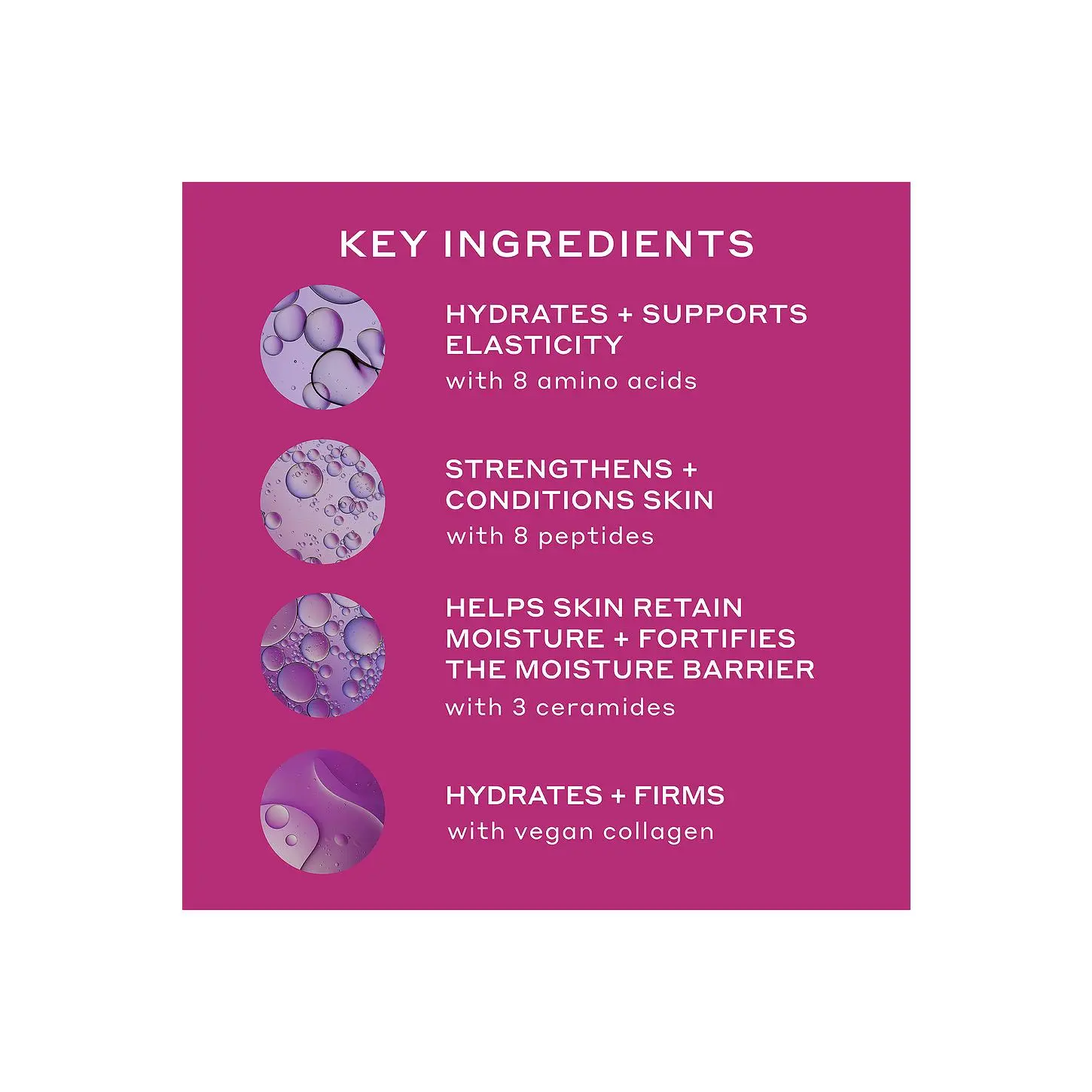 ·A daily moisturizer - powered by peptides, amino acids, ceramides, and collagen - that quickly doubles hydration, visibly boosts elasticity, improves the look of fine lines and wrinkles, and reinforces skin?s moisture barrier all day.