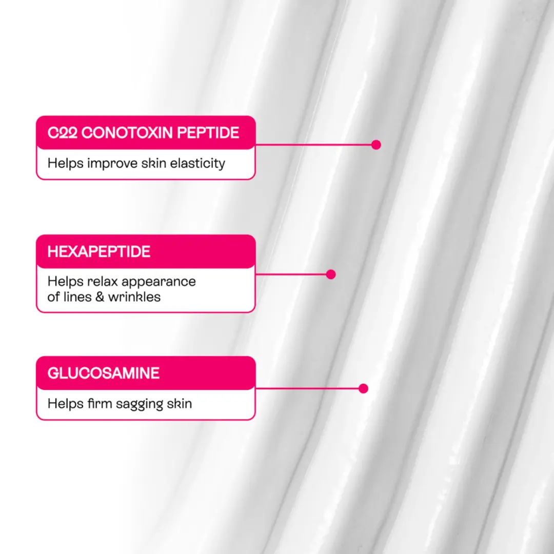 | Ingredients | Water,Pentaerythrityl Tetraethylhexanoate,Glycerin,Dimethicone,Mica,Polyglyceryl-4 Stearate,Silica,Isononyl Isononanoate,Macadamia Ternifolia Seed Oil,Myristyl Myristate,N-Acetyl-D-Glucosamine,S-Mu-Conotoxin Cniiic Acetate,Acetyl Hexapeptide-8,Amaranthus Caudatus Seed Oil,Hordeum Vulgare Extract,Triticum Vulgare (Wheat) Germ Oil,Leuconostoc/Radish Root Ferment Filtrate,Polyglutamic Acid,Betula Alba Bark Extract,Hydrolyzed Vegetable Protein,Stearyl Alcohol,Polysilicone-11,Glycyrrhetinic Acid,Niacinamide,Caffeine,Cocos Nucifera (Coconut) Oil,Sodium Hyaluronate,Punica Granatum (Pomegranate) Sterols,Cocos Nucifera (Coconut) Water,Cocos Nucifera (Coconut) Fruit Juice,Sucrose,Linoleic Acid,Sodium Stearoyl Glutamate,Cetyl Alcohol,Coconut Alkanes,Potassium Cetyl Phosphate,Butyrospermum Parkii (Shea) Butter,Dicaprylyl Ether,Acrylates/C10-30 Alkyl Acrylate Crosspolymer,Tromethamine,Squalane,Propanediol,Sodium Citrate,Sorbic Acid,Citric Acid,Coco-Caprylate/Caprate,Sodium Benzoate,Lecithin,Ormenis Multicaulis (Moroccan Chamomile) Oil,Salvia Sclarea (Clary Sage) Oil,Hydroxyacetophenone,1,2-Hexanediol,Caprylyl Glycol,Glyceryl Caprylate,Trisodium Ethylenediamine,Disuccinate,Glyceryl Undecylenate,Linalool. |