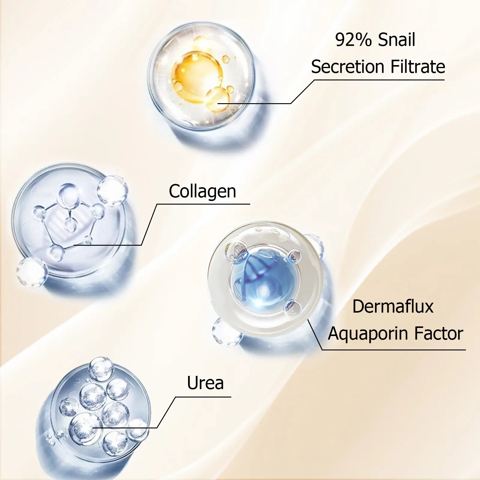 core Ingredients:92% of snail secretion filtrate, vitamin E, squalene, cholesterol, ceramide, macadamia nut seed oil, spring horsetail root extract, sodium hyaluronate, and B-glucan.