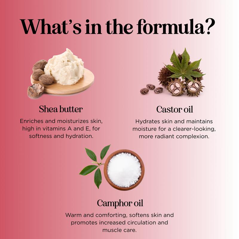 ·Nourishing Ingredients: The Shea butter, Camphor, and Castor oil infused in the cream deeply nourish and plump your skin, leaving it soft and hydrated
