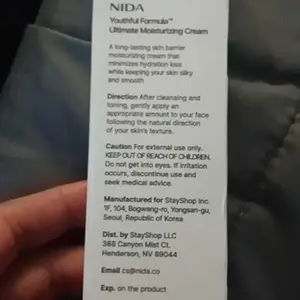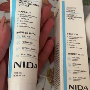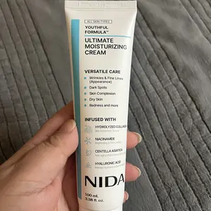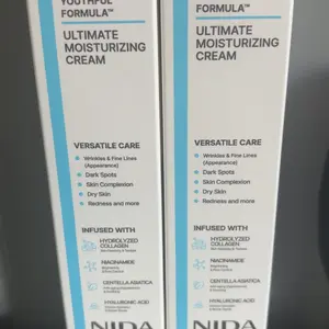 Experience hydrated, healthy-looking skin with NIDA Youthful Formula Ultimate Moisturizing Cream. This cream features a blend of ingredients, including Collagen, Niacinamide, Centella Asiatica, and Hyaluronic Acid selected to help moisturize, soothe, and support the appearance of your skin.
