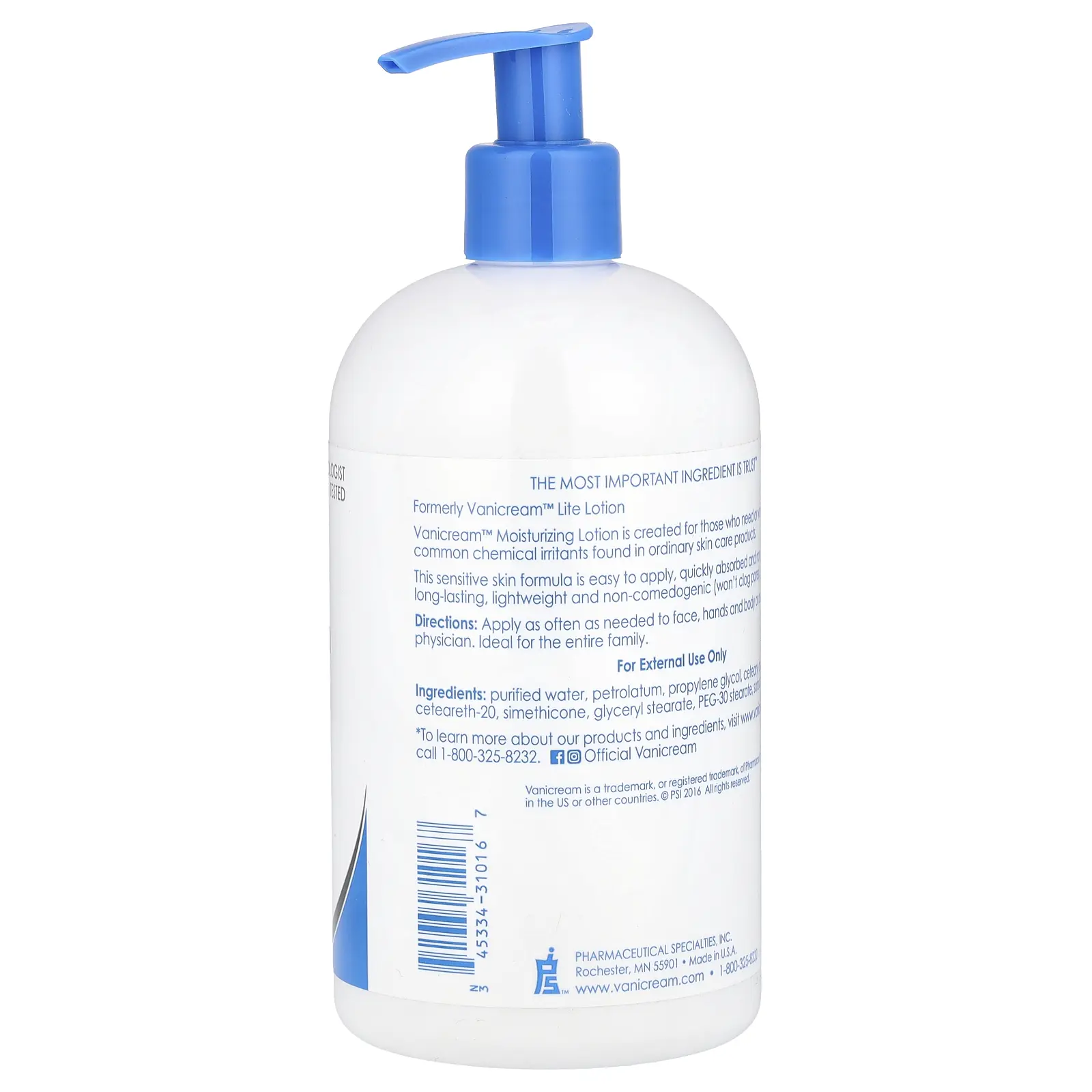 Vanicream Moisturizing Lotion, For Sensitive Skin, Fragrance Free, 16 oz (453 g)