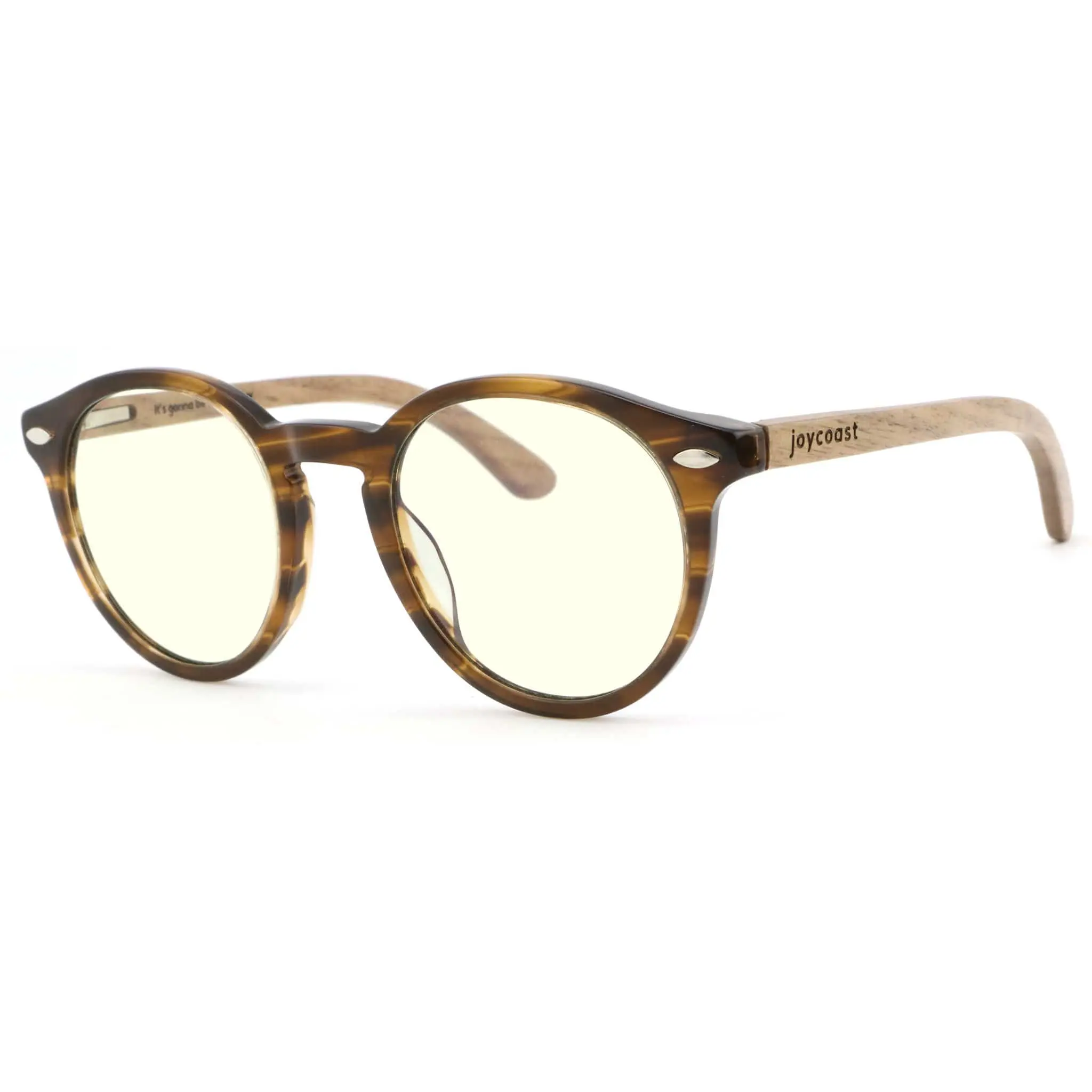 Take a break and protect your eyes with our caramel-toned acetate frame and smooth walnut arms glasses. They're not just lightweight but also feature clear lenses with blue light blocking filters, perfect for any season. Guard your eyes against screen time with Joycoast.