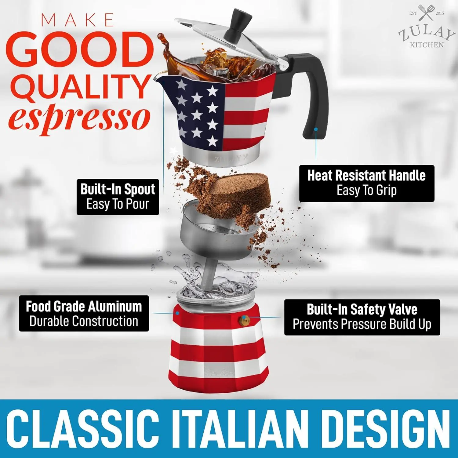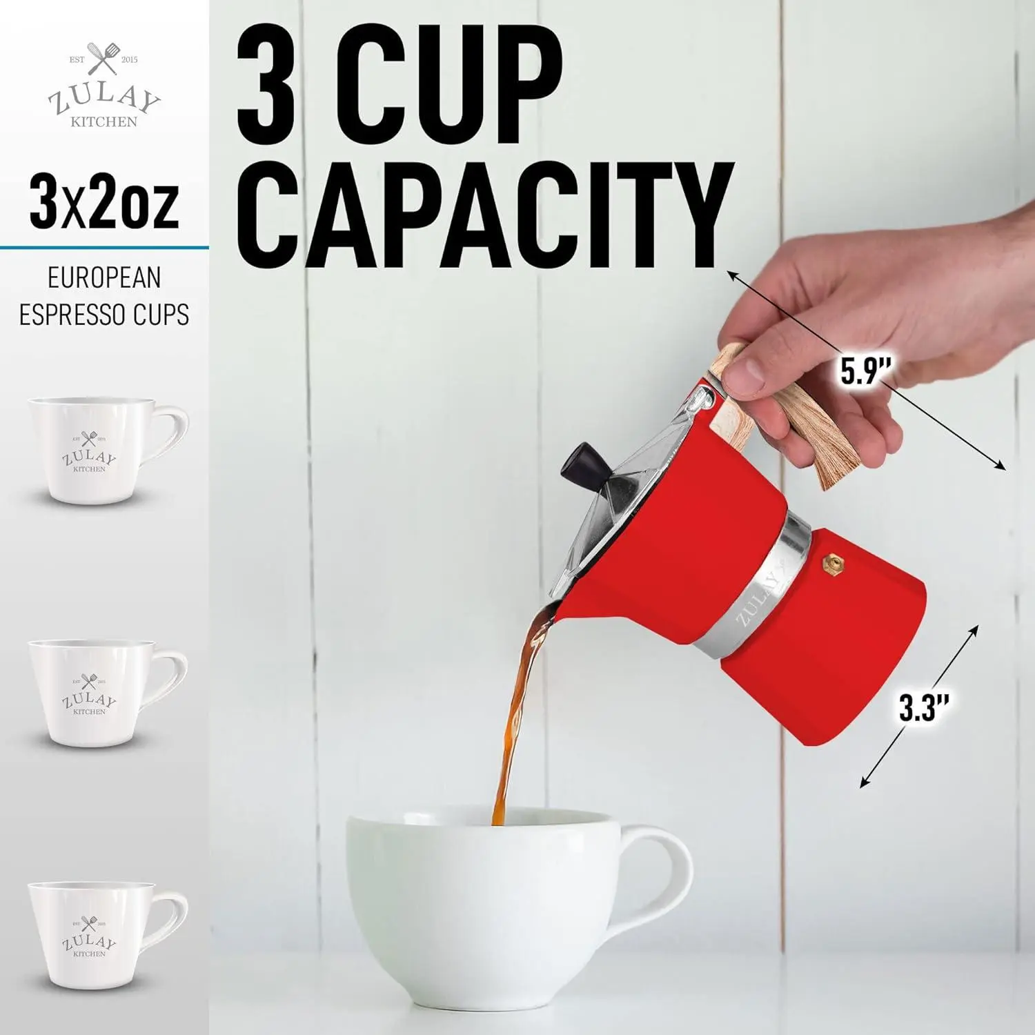 ·Traditional Espresso Brewing: Create rich espresso using the classic stovetop method, producing 3 European espresso cups (2 oz each) or 1 Americano-style cup (5 oz).