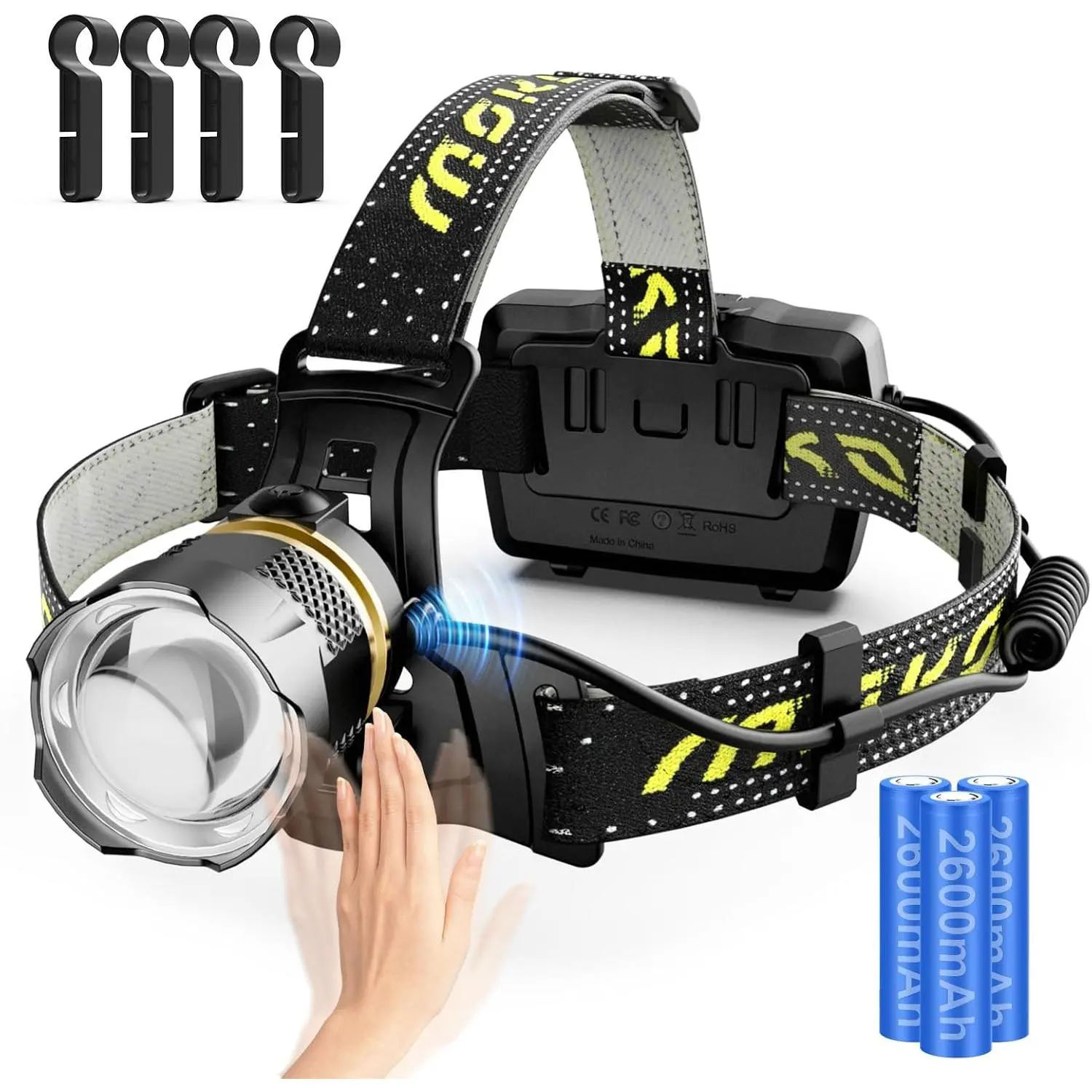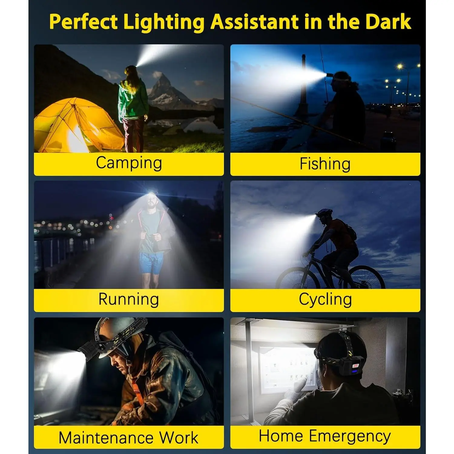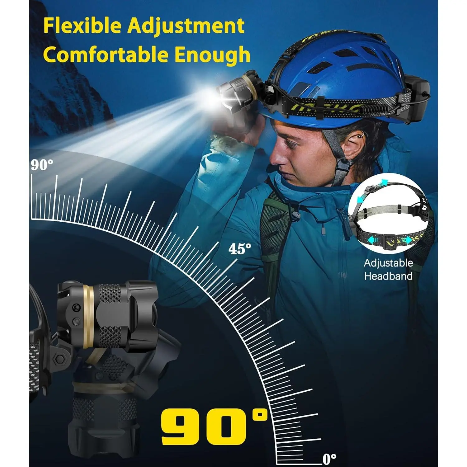 💡 IP68 Waterproof - Made of premium aluminum alloy, this headlamp is waterproof and iceproof, suitable for severe weather conditions.