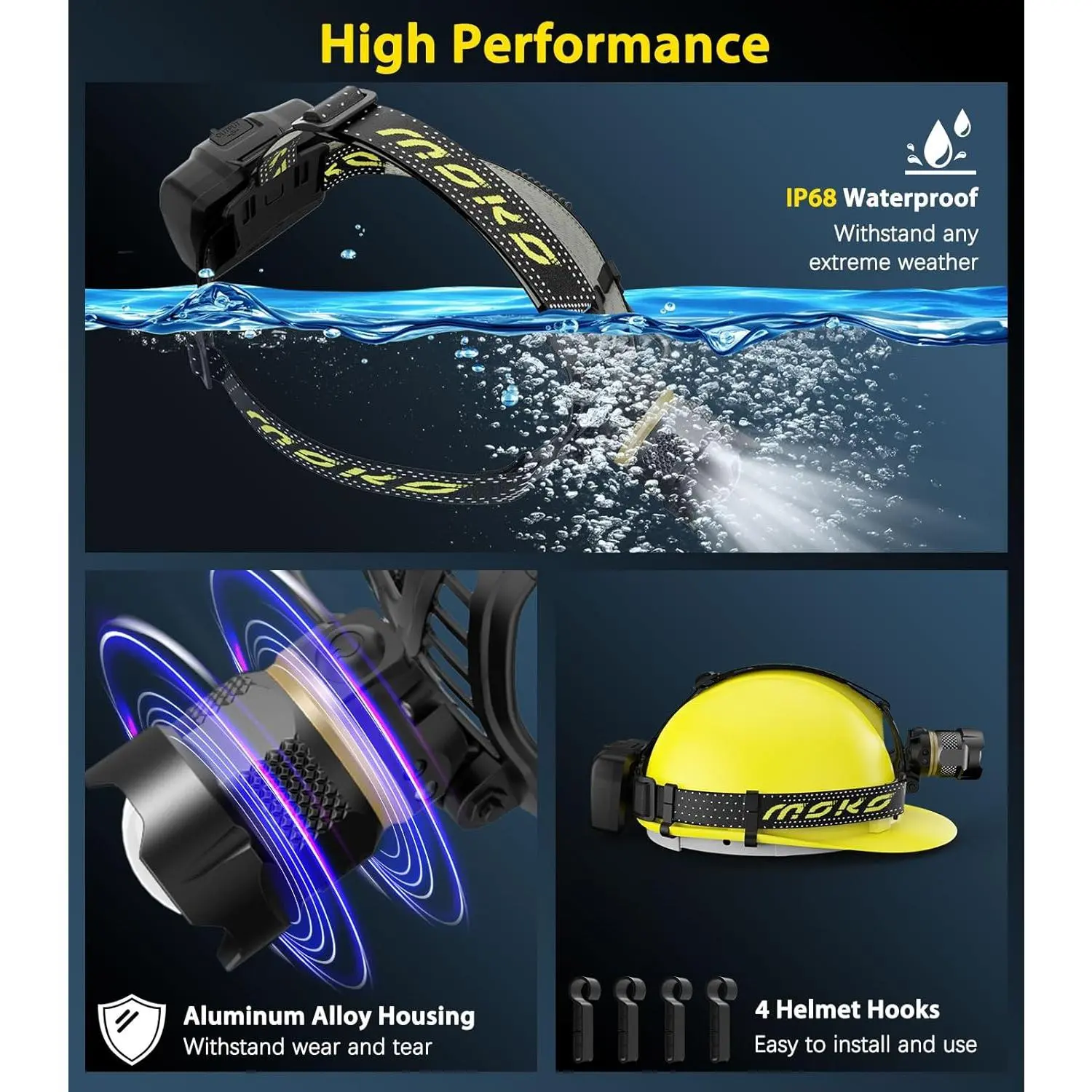 Why Choose MoKo Rechargeable Headlamp?- High Brightness: 90000 lumens for clear visibility- Versatile Modes: 8 lighting modes for different needs- Motion Sensor: Convenient hand-wave activation- Fast Rechargeable: Type-C fast charging- Long Battery Life: 40 hours of use- Waterproof: IP68 for severe weather conditions- Comfortable Wear: Adjustable elastic nylon headband- Helmet Hooks: Easy mounting on helmets