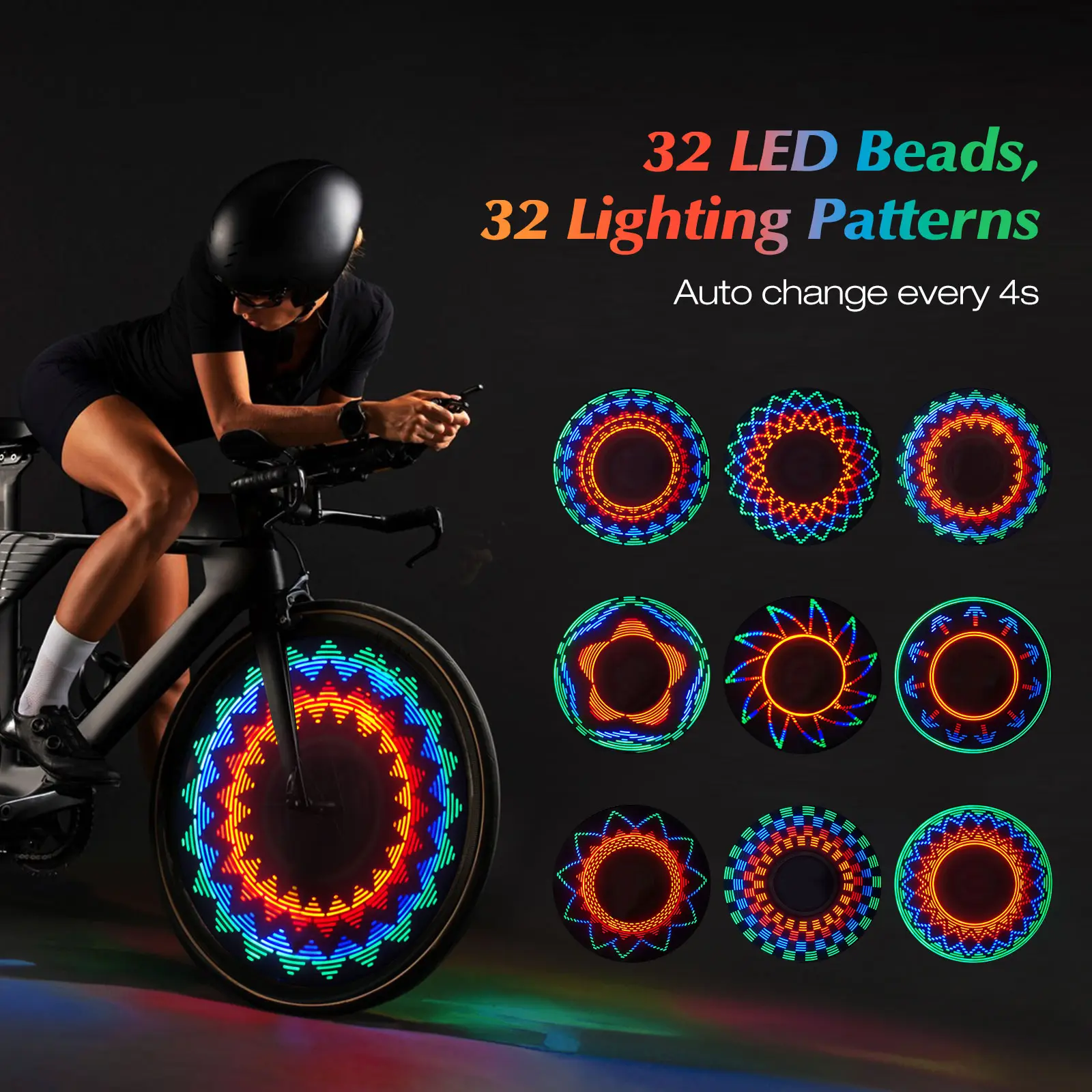 ·Dynamic Patterns: 18 dynamic patterns that change automatically every 4 seconds, adding fun and fashion to your ride.