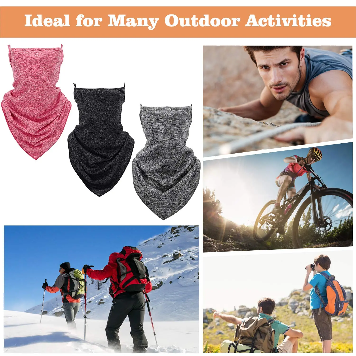 MoKo Scarf Mask Bandana with Ear Loops 3 Pack, Neck Gaiter Balaclava with Filter Pocket Face Mask for Outdoor for Women Men freeski masks tube outdoor sport