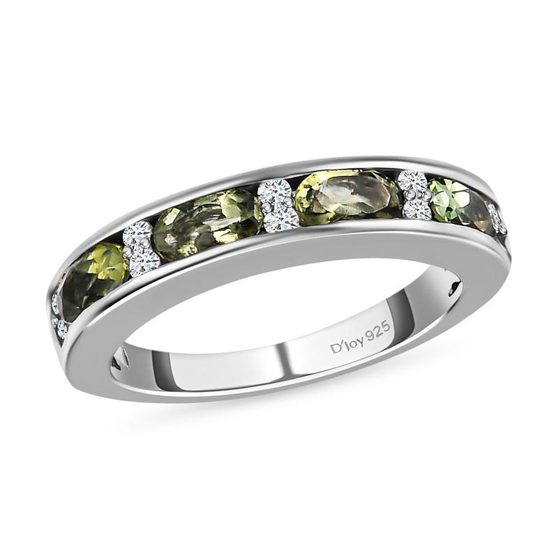 5. Moldavite & White Zircon Half Eternity Rings in 925 Sterling Silver - Wedding Bands for Women with Platinum Plating Promise Jewelry - Engagement Anniversary Birthday Christmas Gifts for Womens