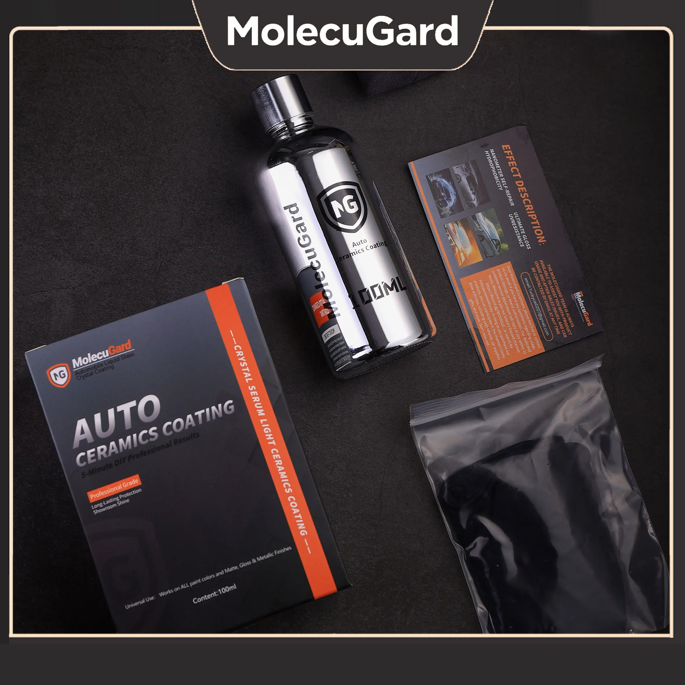 MolecuGard Universal Ceramic Coating Kit - Instantly Restores Cars, Furniture, Guitars& Home Decor. High Gloss Scratch Repair & Water Repellent. Multi-Surface Nano Shield for Wood, Stone, Glass & Auto Paint 100ml