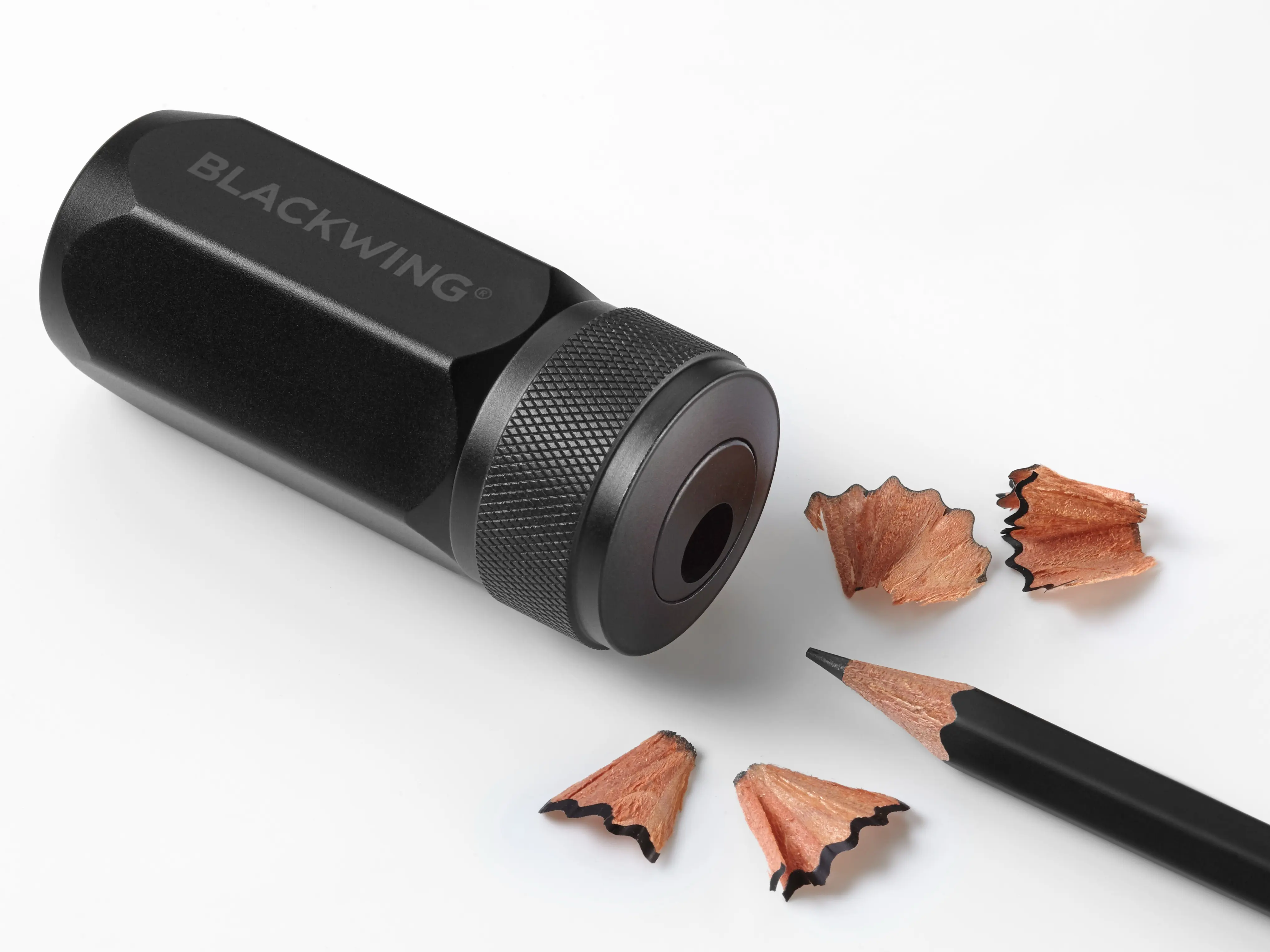 The One-Step Long Point Sharpener creates an extended, curved point that resists breaking. It fits comfortably in your palm and is made from sturdy machined aluminum with a German steel blade inside. You can sharpen your pencil up to three times before emptying the canister. This sharpener is specially designed to help you get the most from your Blackwing pencils.
