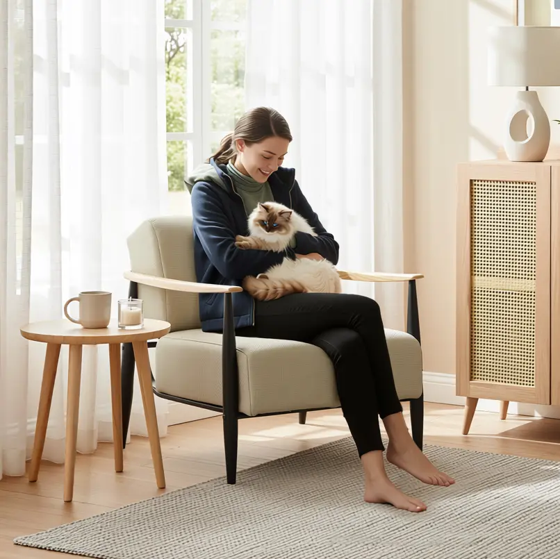 This MOLICA Classic Fabric Accent Chair pairs warm wood detailing with a modern steel frame for a timeless, everyday seat. A pocket-spring core adds plush support, while the breathable removable cover makes it easy to refresh, clean, or DIY the look.
