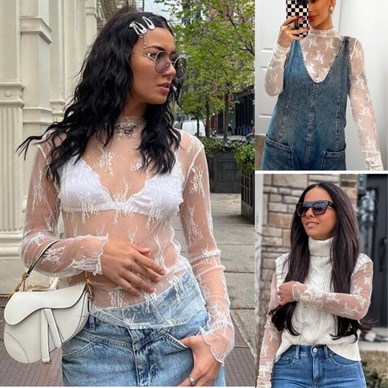 ·Sexy Sheer Mesh Top: Features long sleeves and a mock neck.