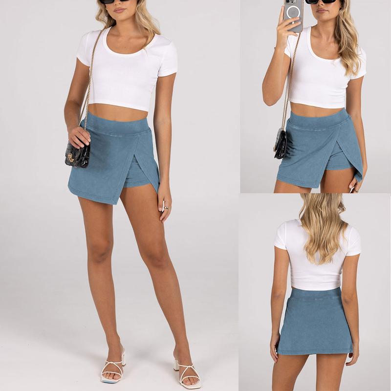 Cute skort. Love that it has the shorts underneath. I got the black ones. They are a little more washed out than I had hoped but very cute and comfortable. 118lbs. 5’3” I got a size small.