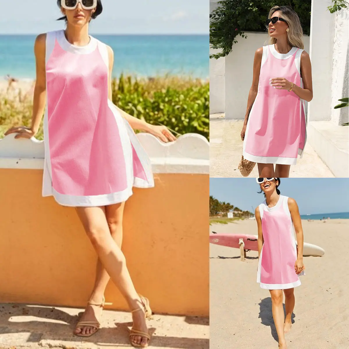 • Crewneck design • Color block pattern • Side slit on top • Sleeveless pullover top • Solid shorts with pockets The set creates a relaxed, slouchy silhouette. The trendy color block adds visual interest to your outfit. It’s perfect for casual daily wear or travel.