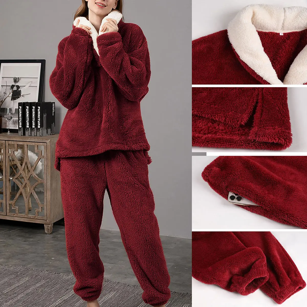 ·Soft winter warm pjs set 2 piece loungewear, high-quality comfy fabrication feels as smooth and light as air on your skin