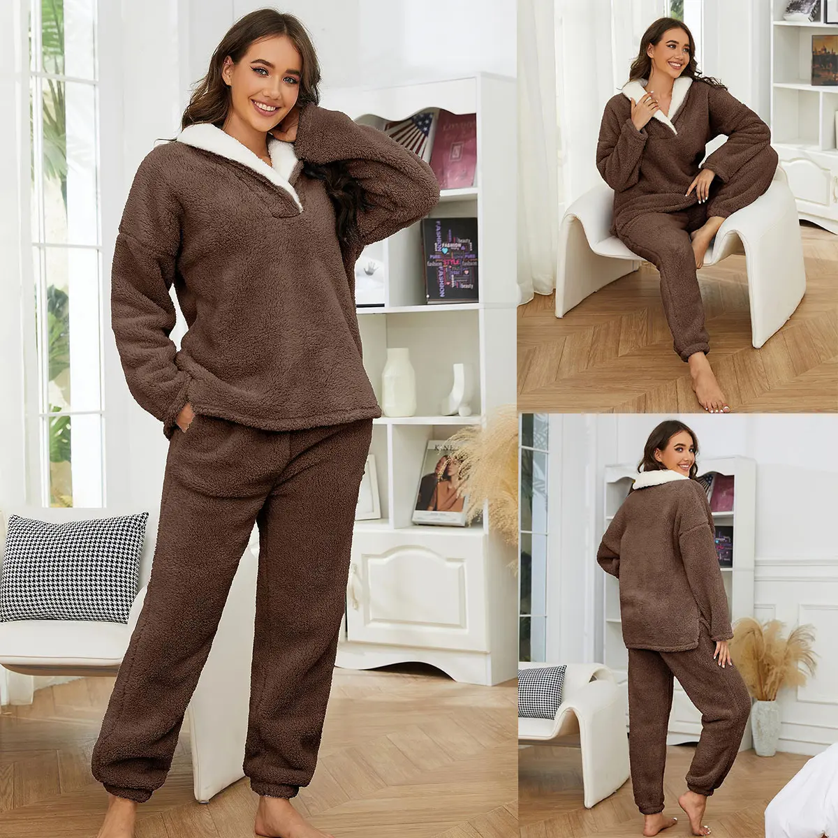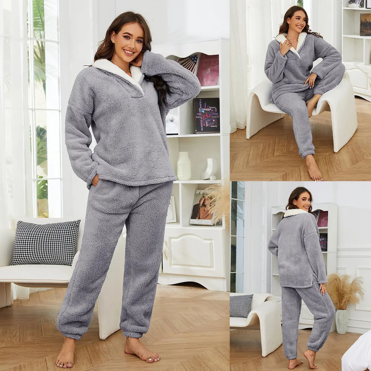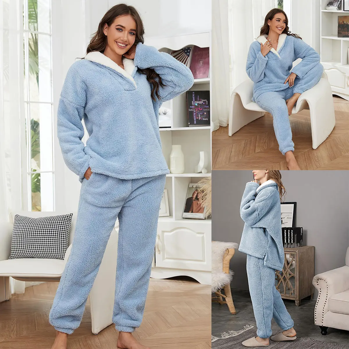 ·This casual pajama set plush outfit for women will be great for you and your family members and friends, enjoying a cozy time at home or a casual outing. Perfect for loungewear, homeware, sleepwear, nightwear, party wear, home dress and so on
