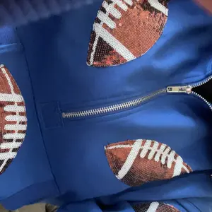 Match: long sleeve football game outfit sequin patchwork rugby tops for women, perfect pair with biker shorts, jeans, joggers, sneakers, easy style a edgy look