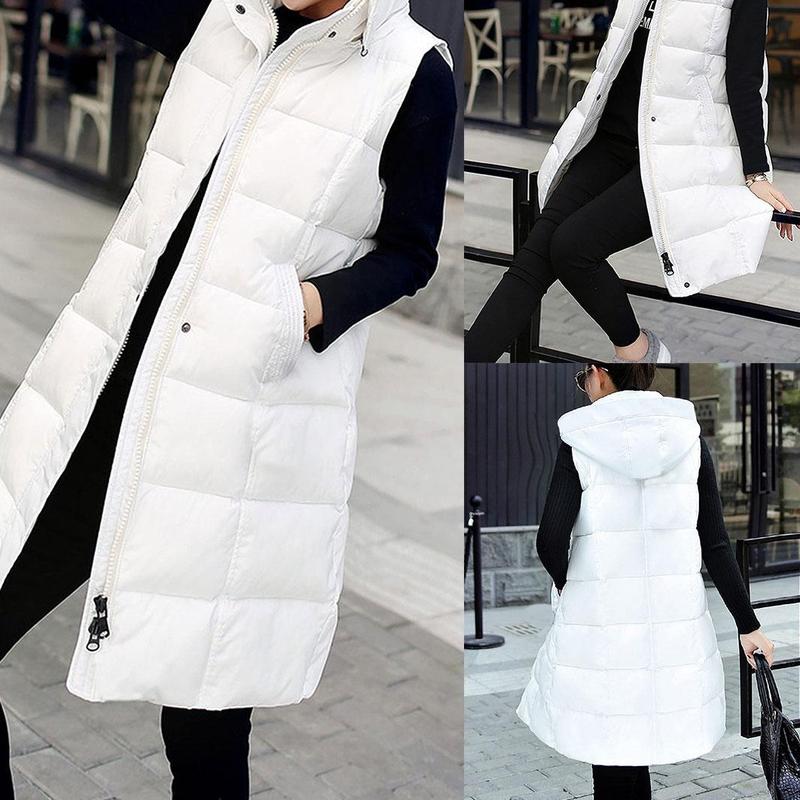 ·Feature:Womens long puffer vest, Two side pockets, Full zip, Removable hood, Mid length, Sleeveless, Padded gilet