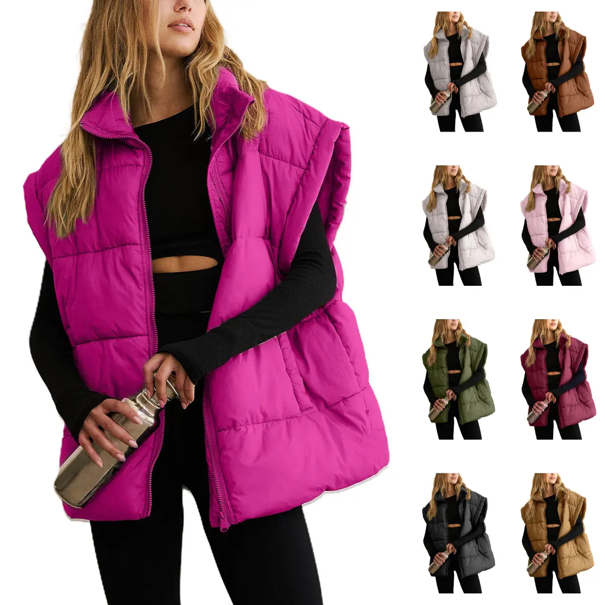 ·Stay Warm & Stylish: women's quilted lightweight outerwear vests, it comes in classic black, brown, apricot, hot pink and armygreen colors, ensuring a timeless and trendy look