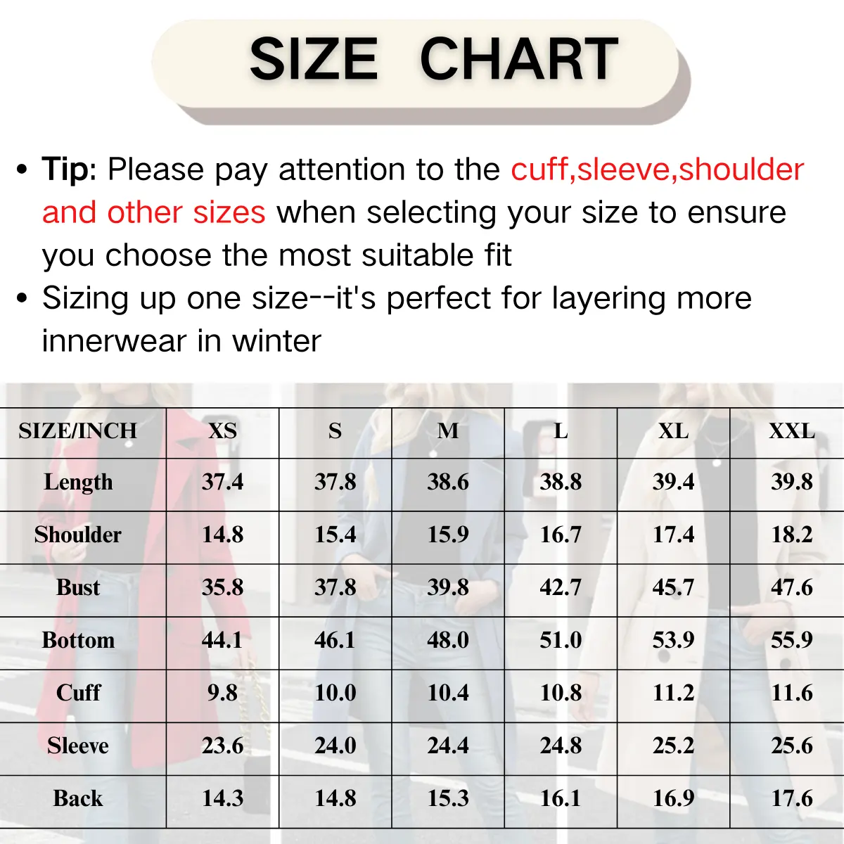 Beautiful Coat, love the style. Returning it just to buy again in a bigger size