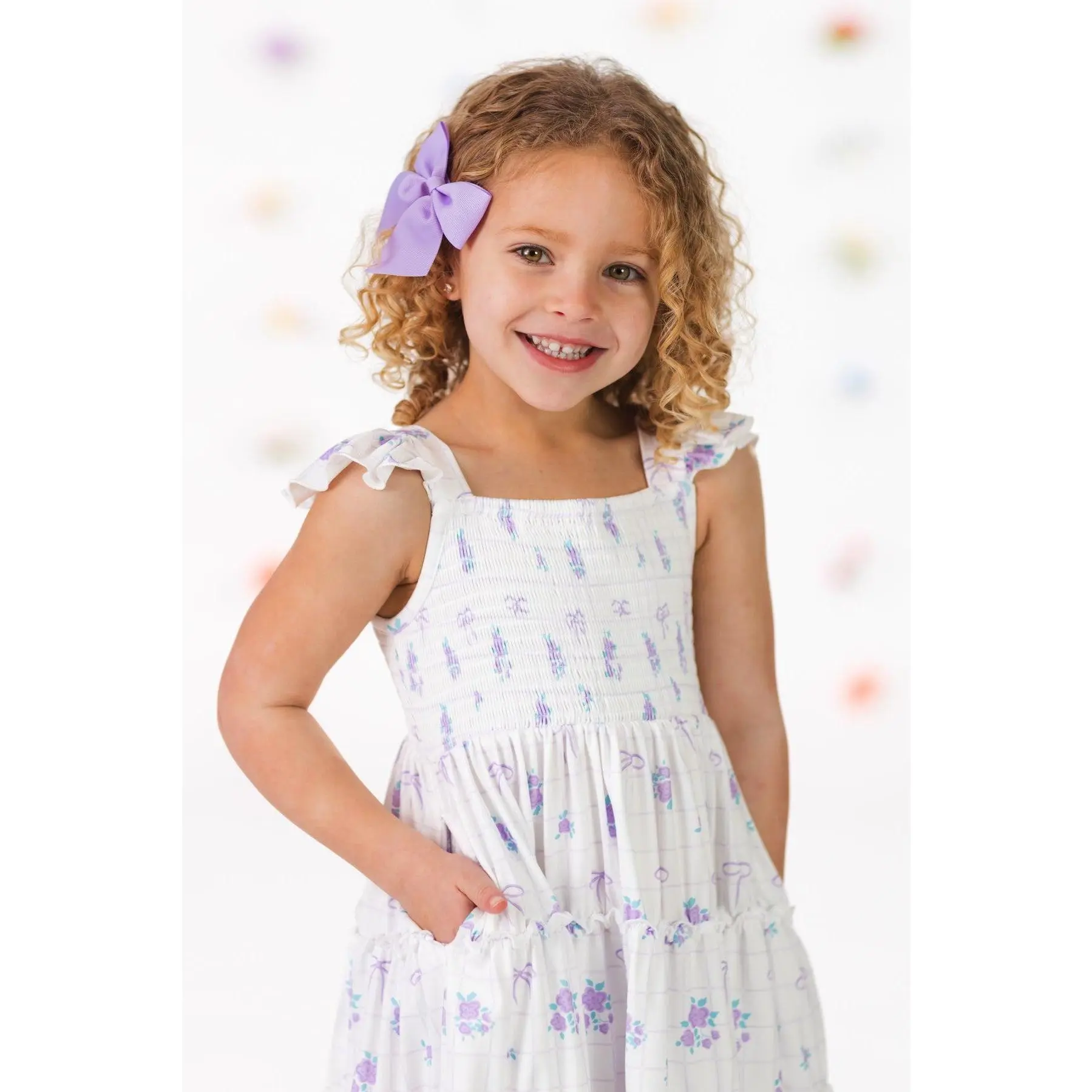 Twinning is winning in these Floral Bows Checkered Dresses! These dresses feature a feminine fluttery tank sleeve with an allover floral bow design. This dress is made from soft and breathable fabric that will keep her comfy during all adventures. The flowy style design offers a feminine fit, while the floral bow print adds a sweet touch. She can pair it with some SIP bows & our sandals for the perfect look! Little ones love to match their mommy!