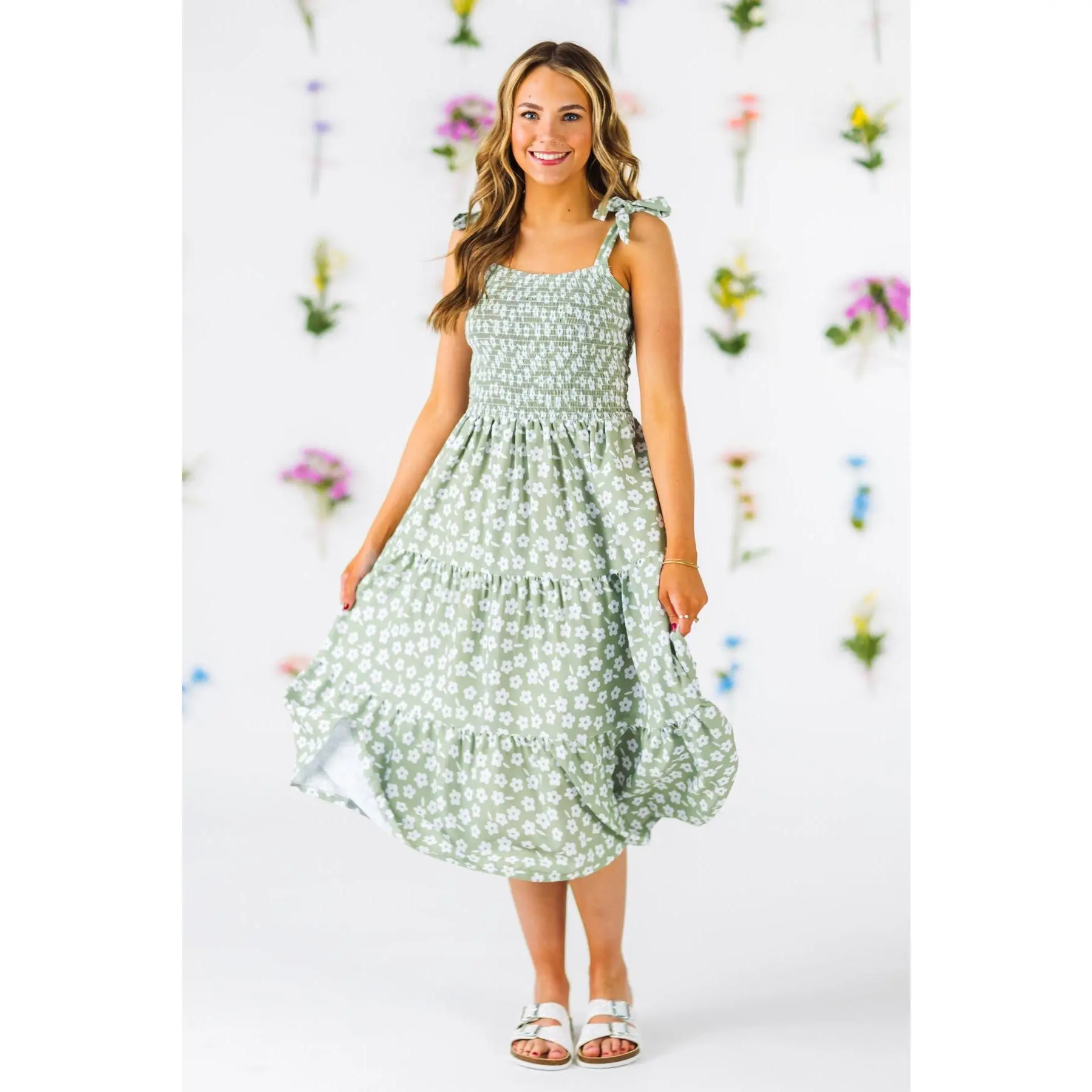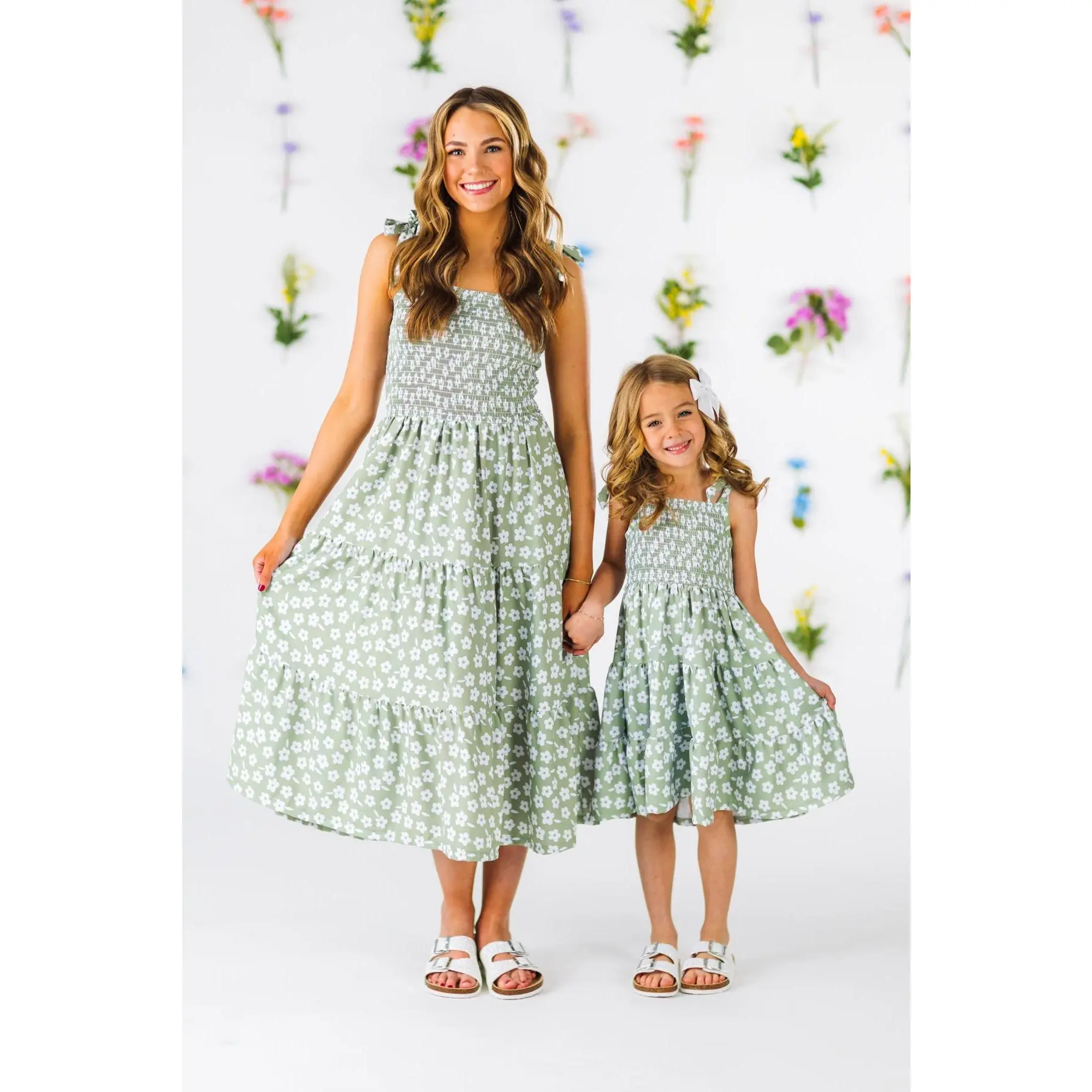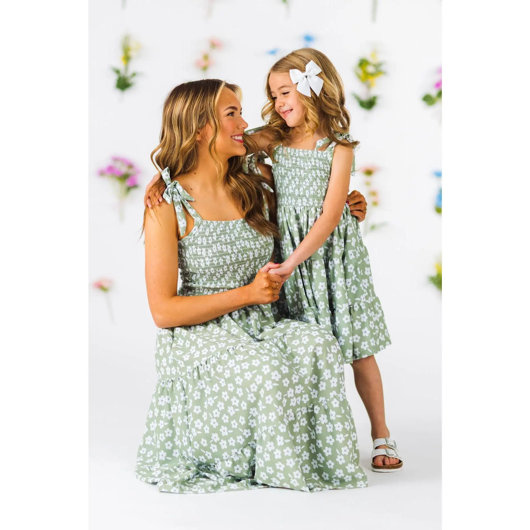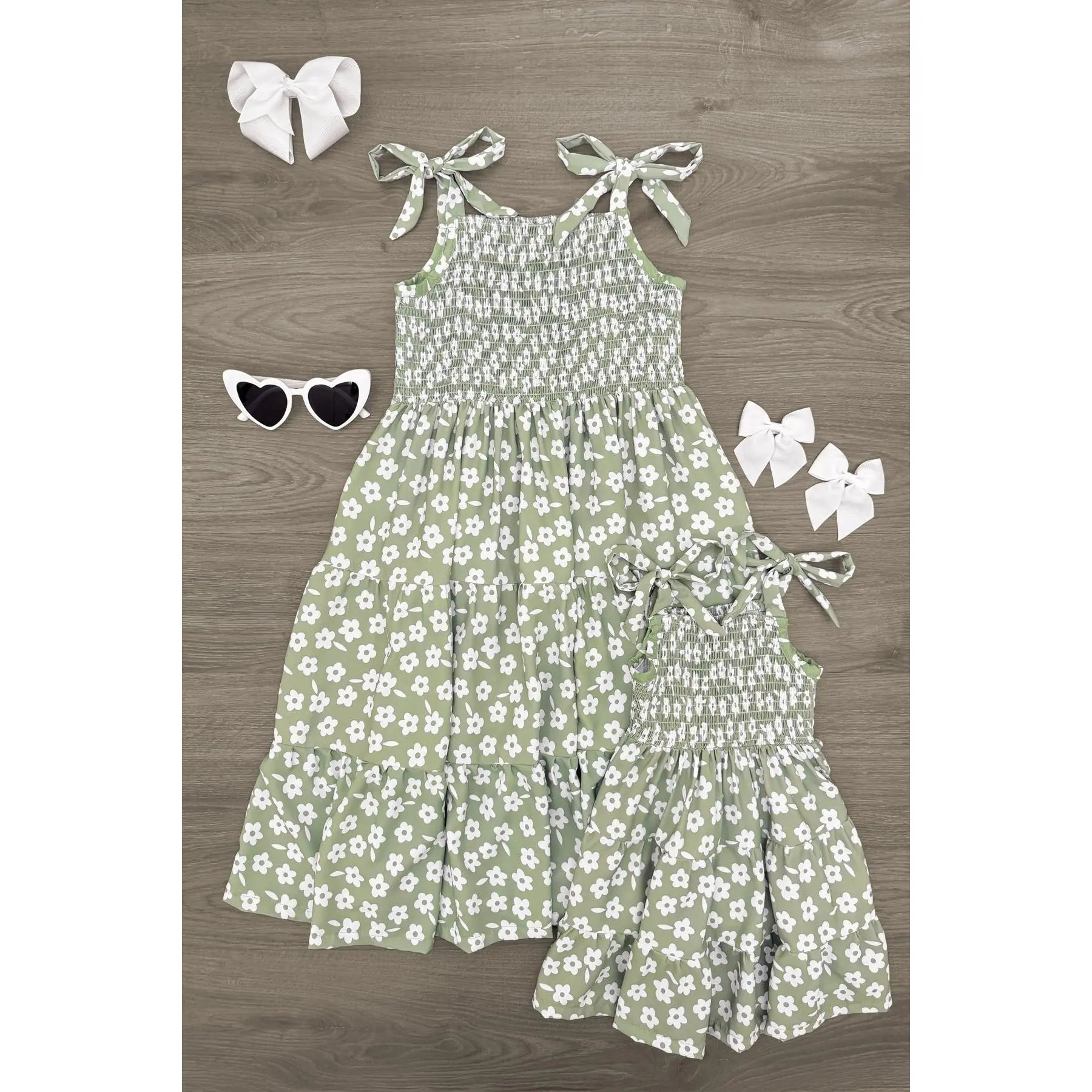Twinning is winning! These Green & White Flower Dresses feature adjustable tie straps and a fun green and white flower print. This dress is made from soft and breathable fabric that will keep her comfy during all adventures. She can pair it with a variety of SIP bottoms & our sandals for the perfect look! Little ones love to match their mommy!