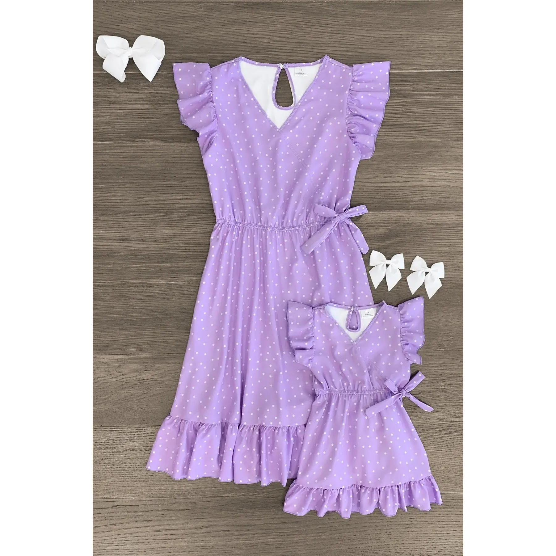 Mom & Me - Lavender Polka Dot Ruffle Dress