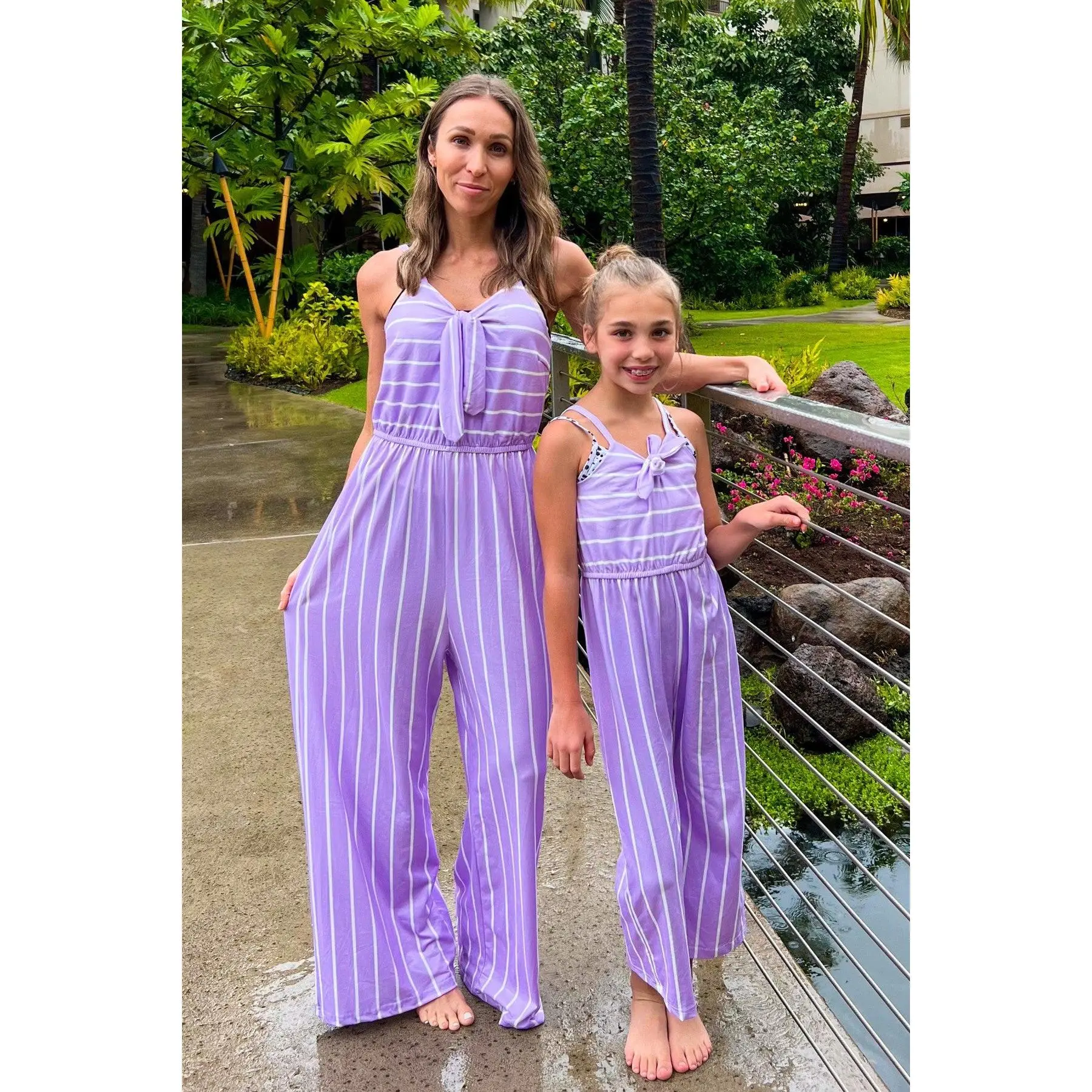 You and your little one will look amazing twinning in our Stripe Jumpsuits. It's a one piece complete outfit! This jumpsuit is the perfect pick for any busy day on the go. The stretchy and soft fabric helps comfort and fit and can be great for all day wear. This capri-length jumpsuit features a cinch waist & looks adorable paired with our matching bows, or keep it laid back with a pair of sandals, she’ll shine bright in this kids ensemble. Little ones love to match their mommy! These mommy and me jumpsuits are effortlessly stylish and comfortable. The purple striped design is modern and flattering, making them perfect for family outings or casual days.