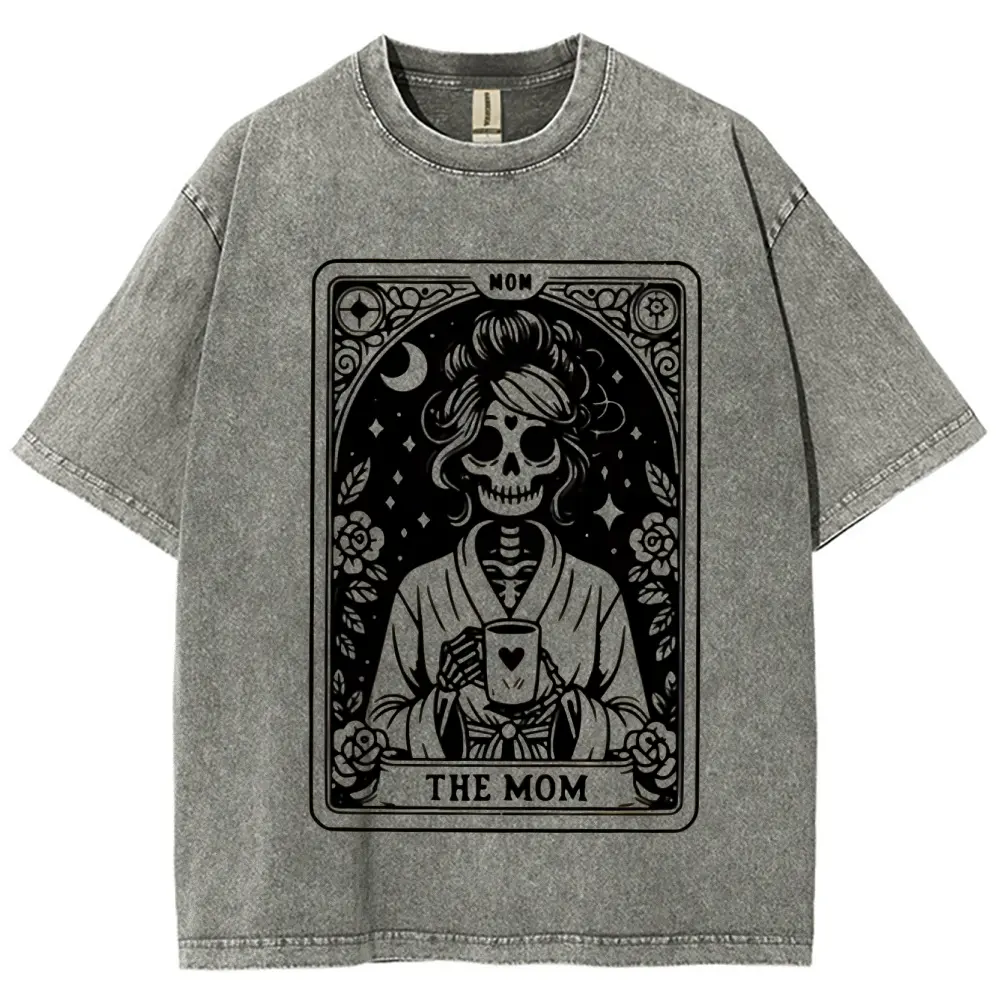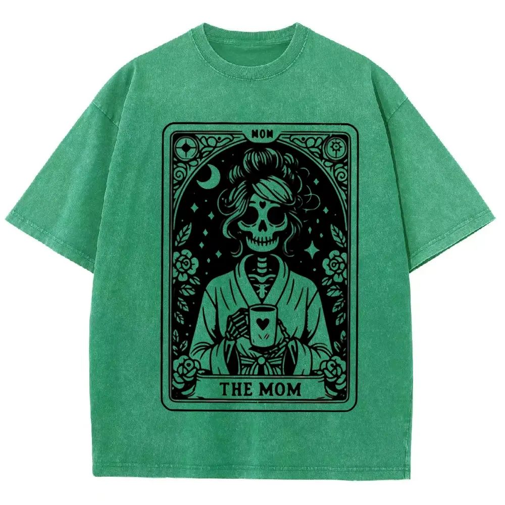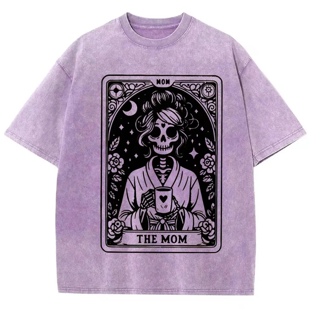 5. Mom Tarot Graphic Print washed T-shirt, Short Sleeve Crew Neck Casual Top for Summer & Spring, Women's Clothing