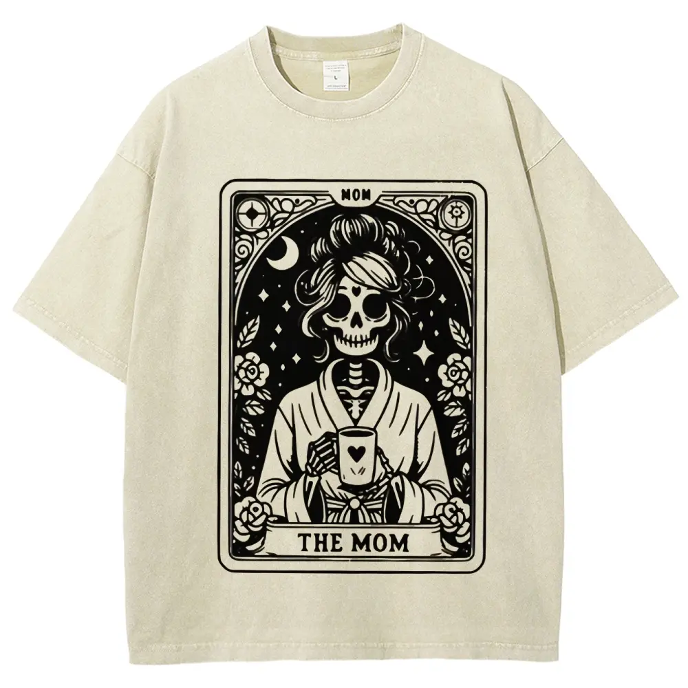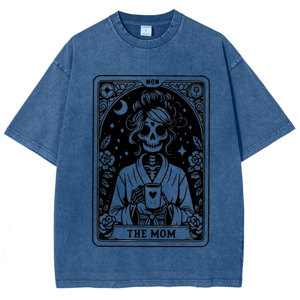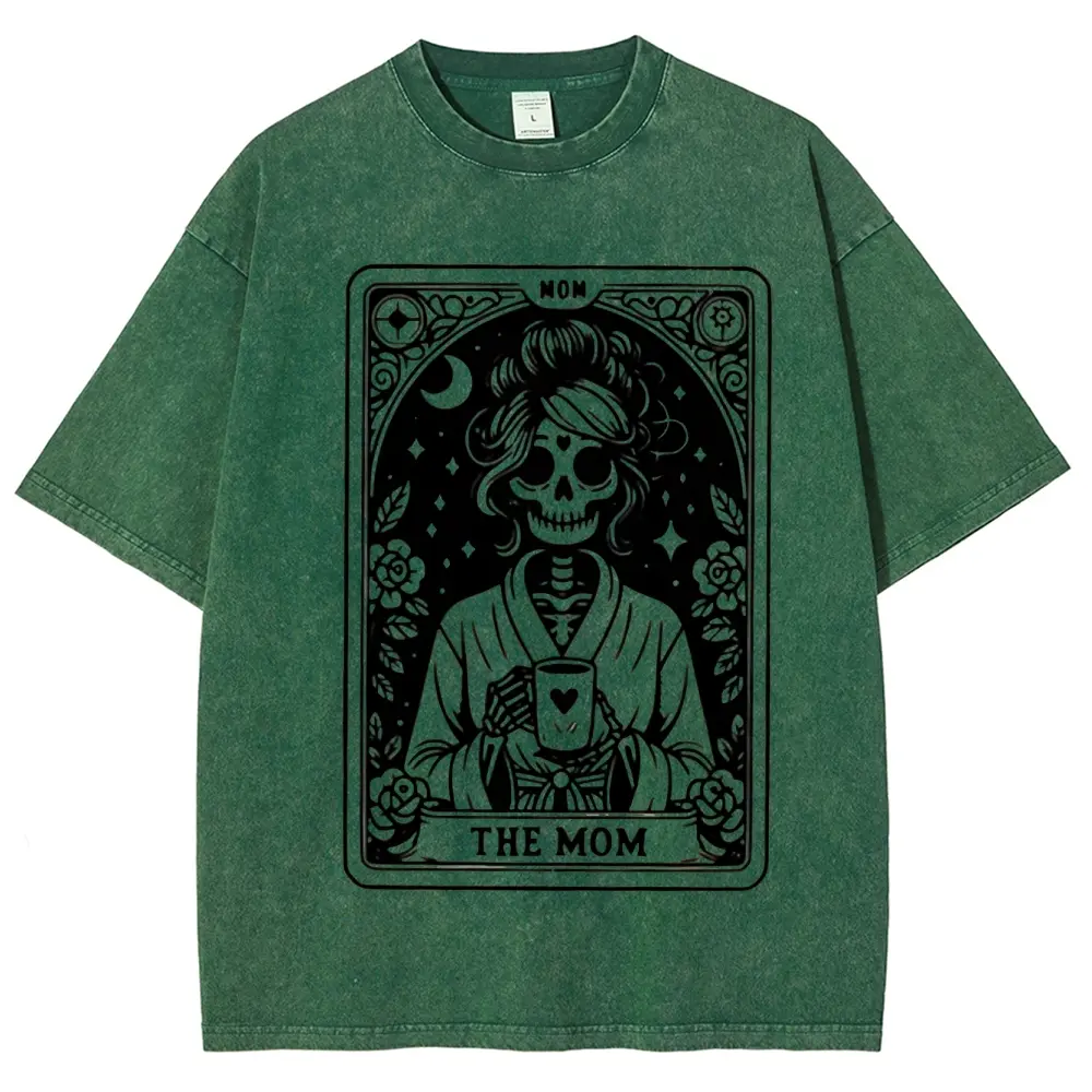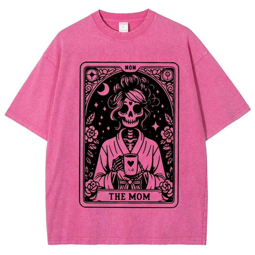 5. Mom Tarot Graphic Print washed T-shirt, Short Sleeve Crew Neck Casual Top for Summer & Spring, Women's Clothing